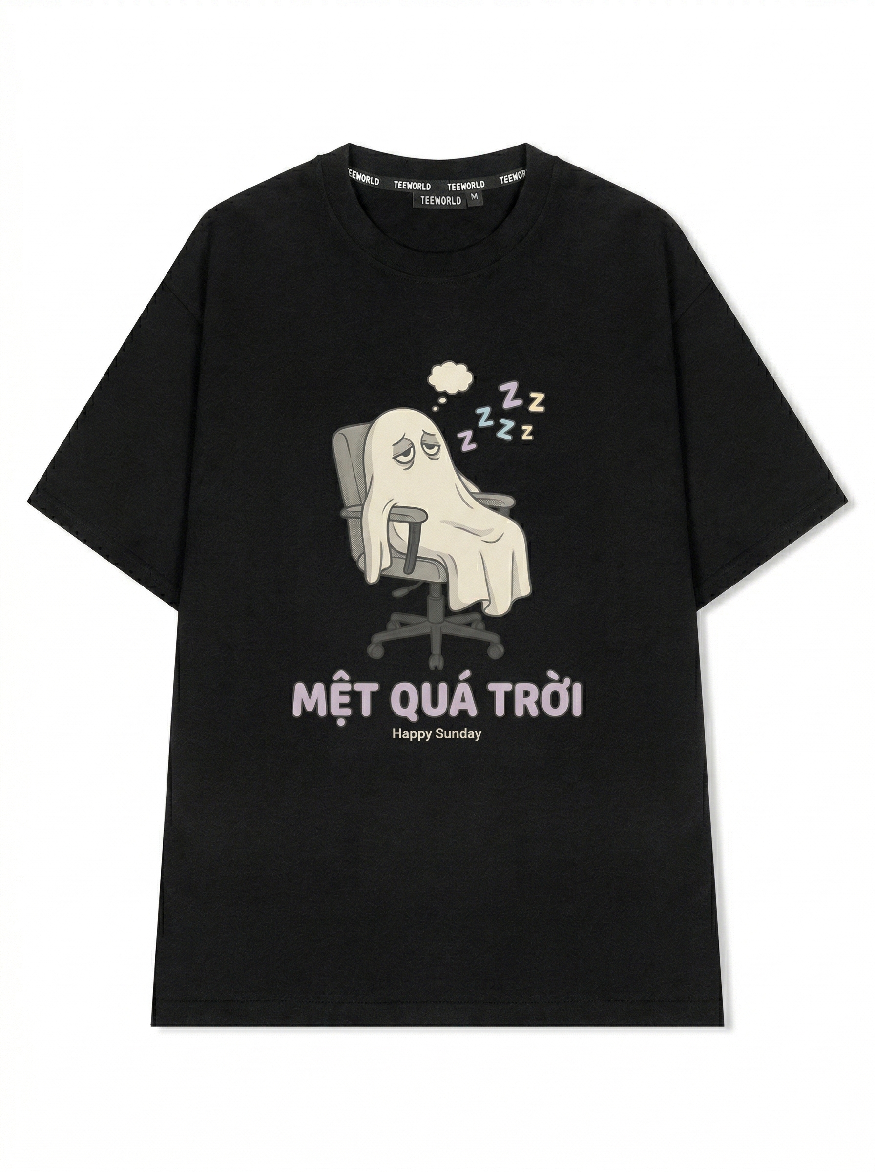 Ghosted Work - Thiết kế độc quyền từ Happy Sunday. Chất liệu: Cotton Premium 250gsm, form oversize thoải mái. In ấn: Công nghệ in sắc nét, bền màu sau nhiều lần giặt. Phong cách: Streetwear hiện đại, dễ phối đồ.