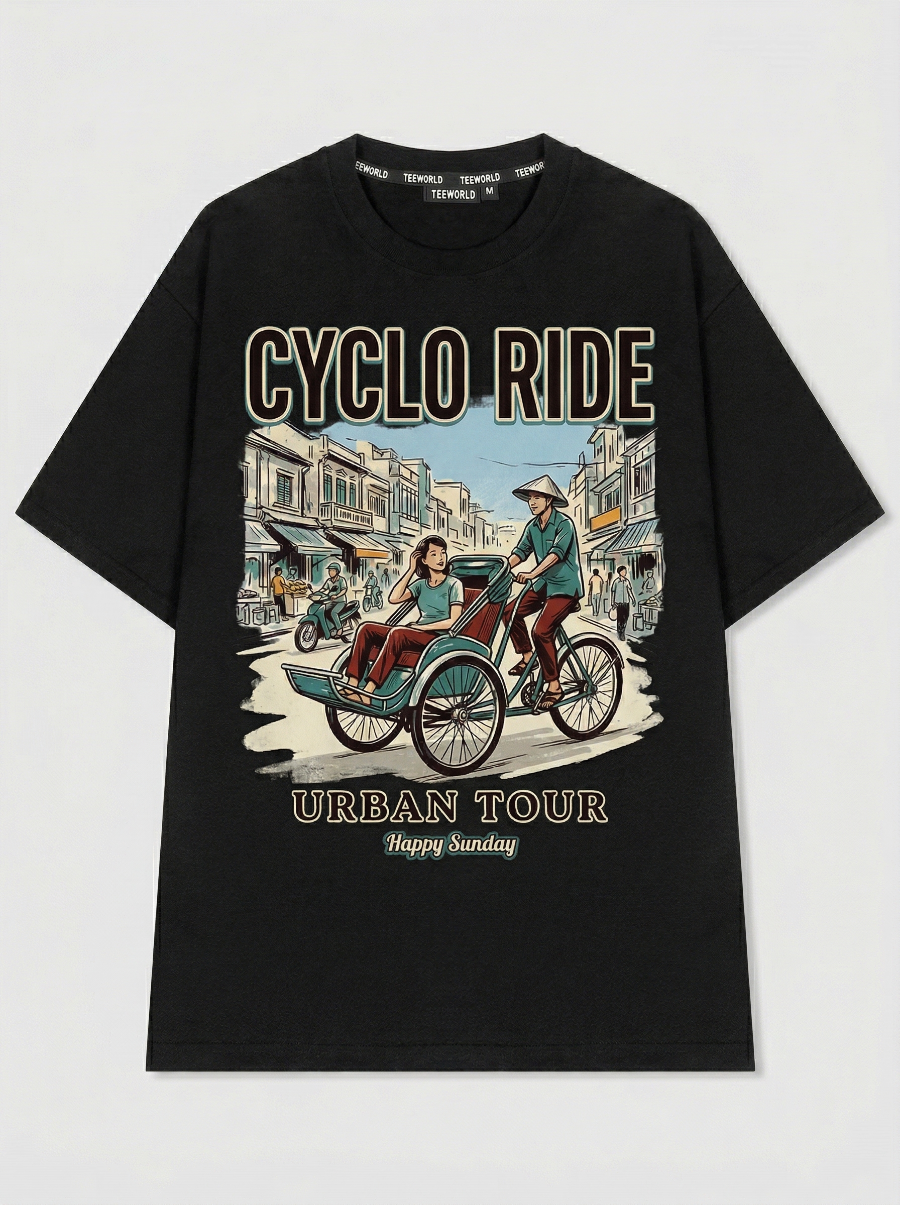 Golden Hour - Thiết kế độc quyền từ Happy Sunday. Chất liệu: Cotton Premium 250gsm, form oversize thoải mái. In ấn: Công nghệ in sắc nét, bền màu sau nhiều lần giặt. Phong cách: Đồ họa nghệ thuật, nổi bật.