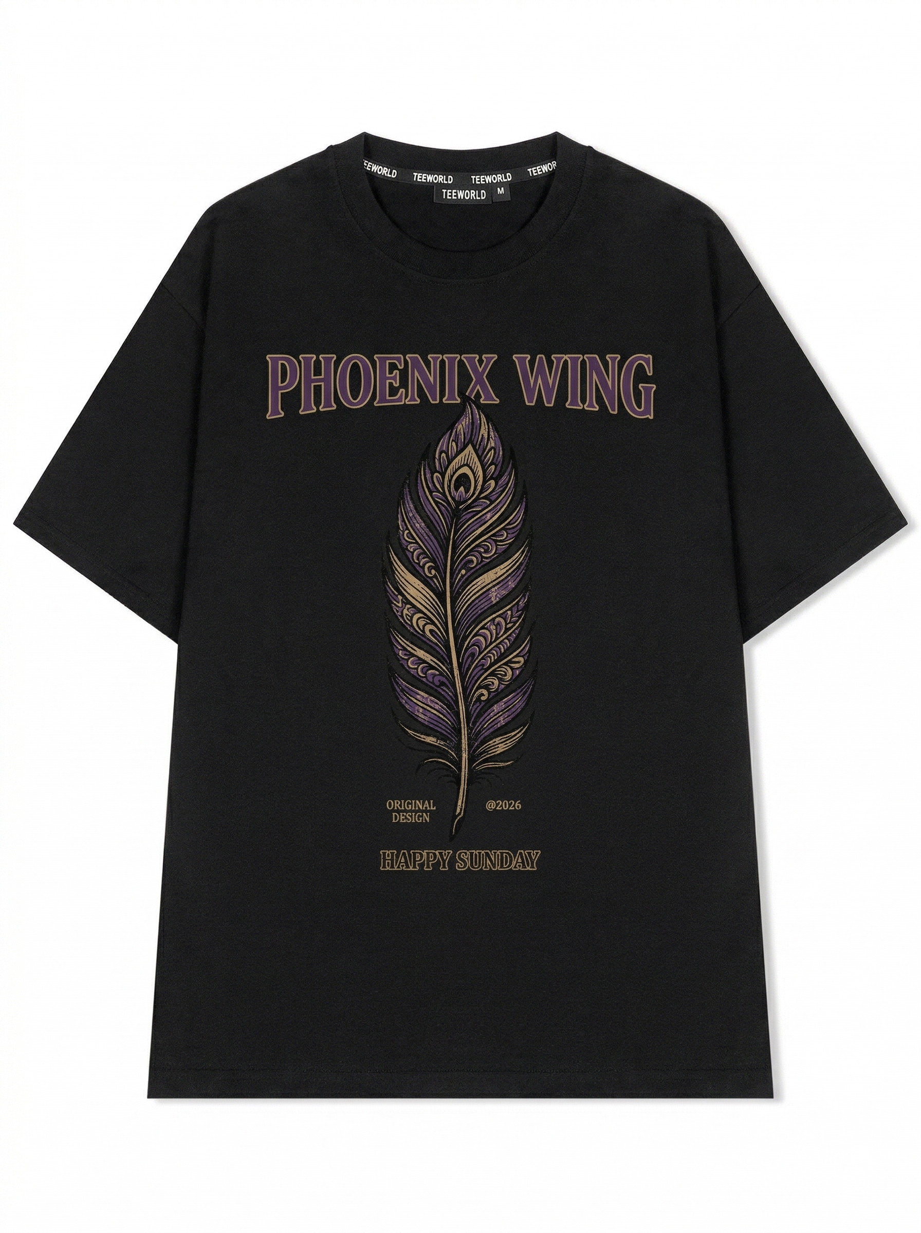 Golden Plume - Thiết kế độc quyền từ Happy Sunday. Chất liệu: Cotton Premium 250gsm, form oversize thoải mái. In ấn: Công nghệ in sắc nét, bền màu sau nhiều lần giặt. Phong cách: Đồ họa nghệ thuật, nổi bật.
