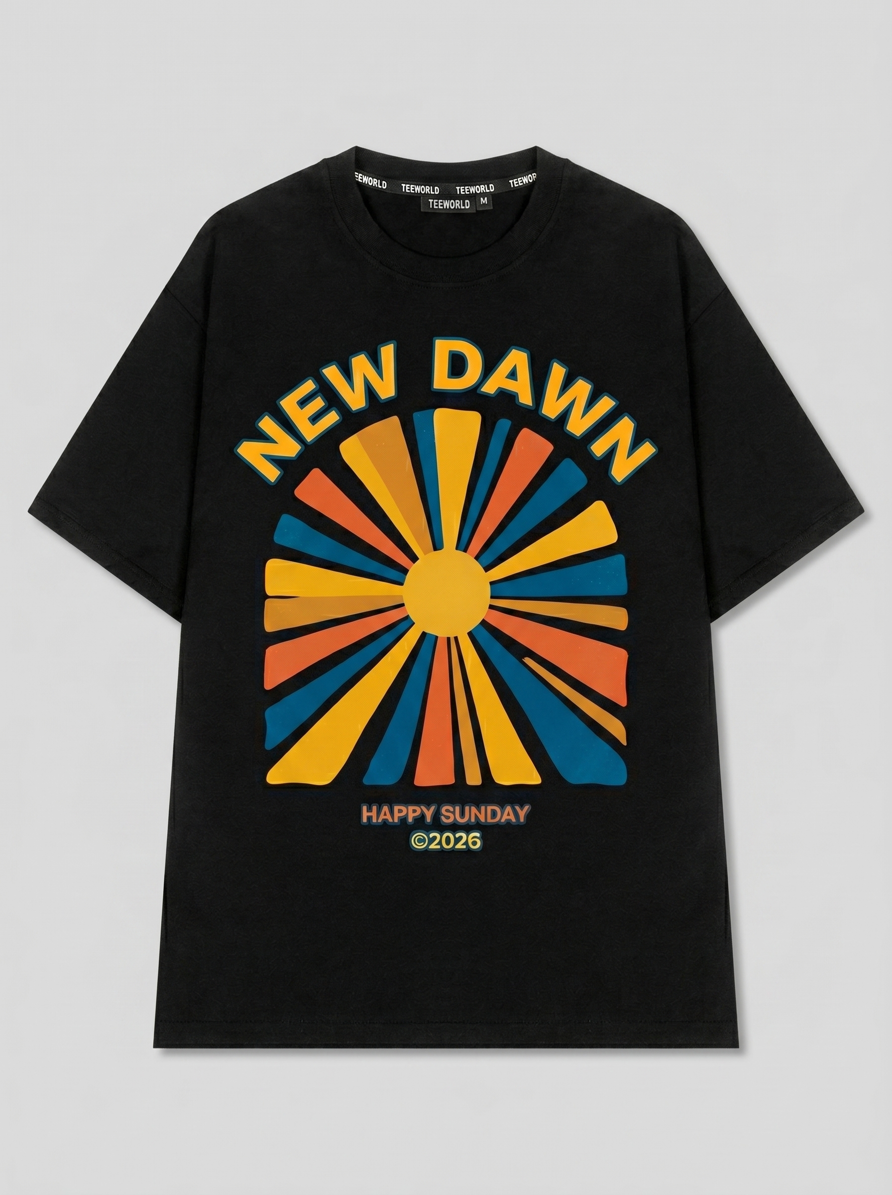 Golden Rays - Thiết kế độc quyền từ Happy Sunday. Chất liệu: Cotton Premium 250gsm, form oversize thoải mái. In ấn: Công nghệ in sắc nét, bền màu sau nhiều lần giặt. Phong cách: Đồ họa nghệ thuật, nổi bật.