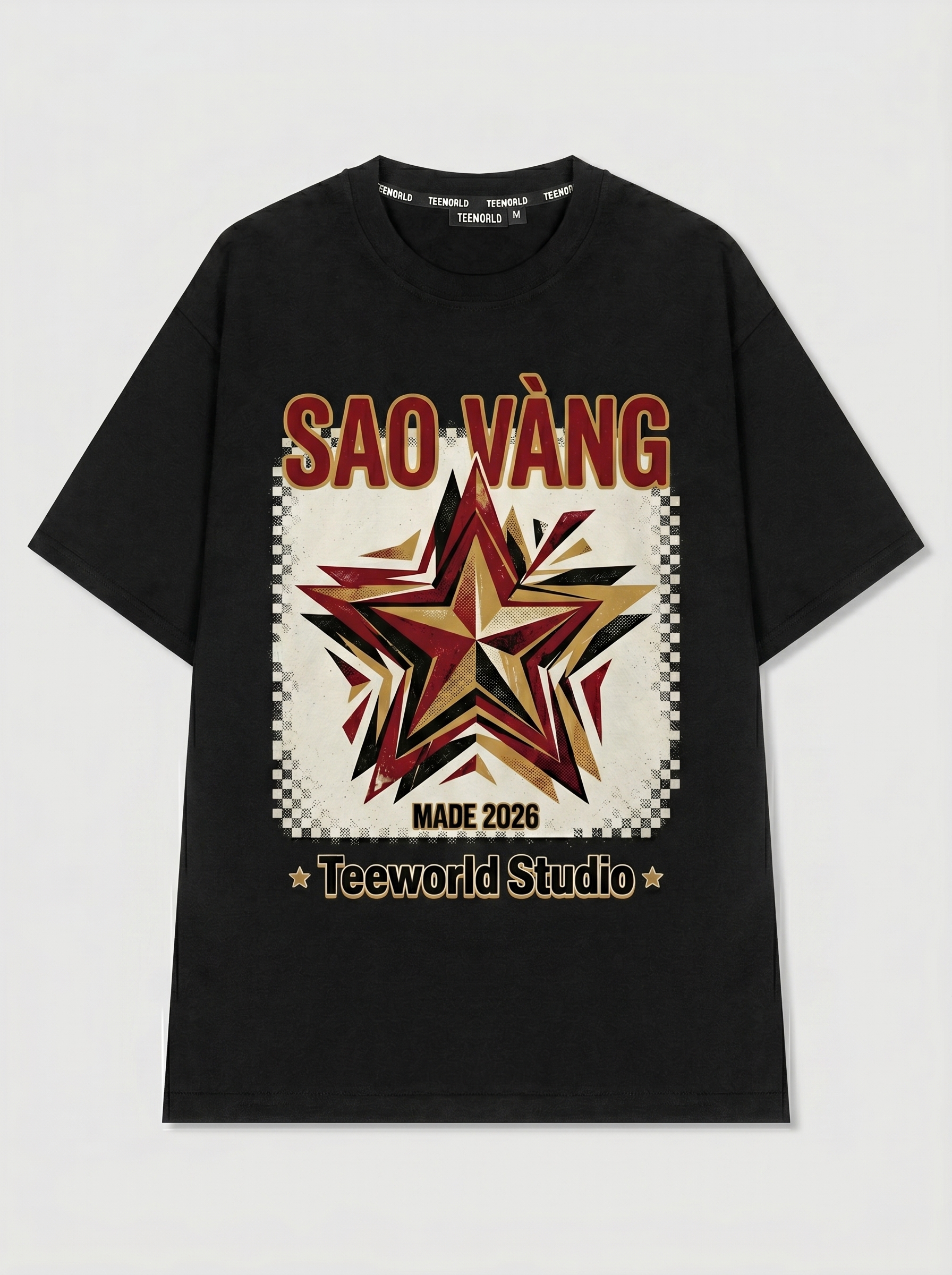 Golden Star - Thiết kế độc quyền từ Teeworld. Chất liệu: Cotton Premium 250gsm, form oversize thoải mái. In ấn: Công nghệ in sắc nét, bền màu sau nhiều lần giặt. Phong cách: Streetwear hiện đại, dễ phối đồ.