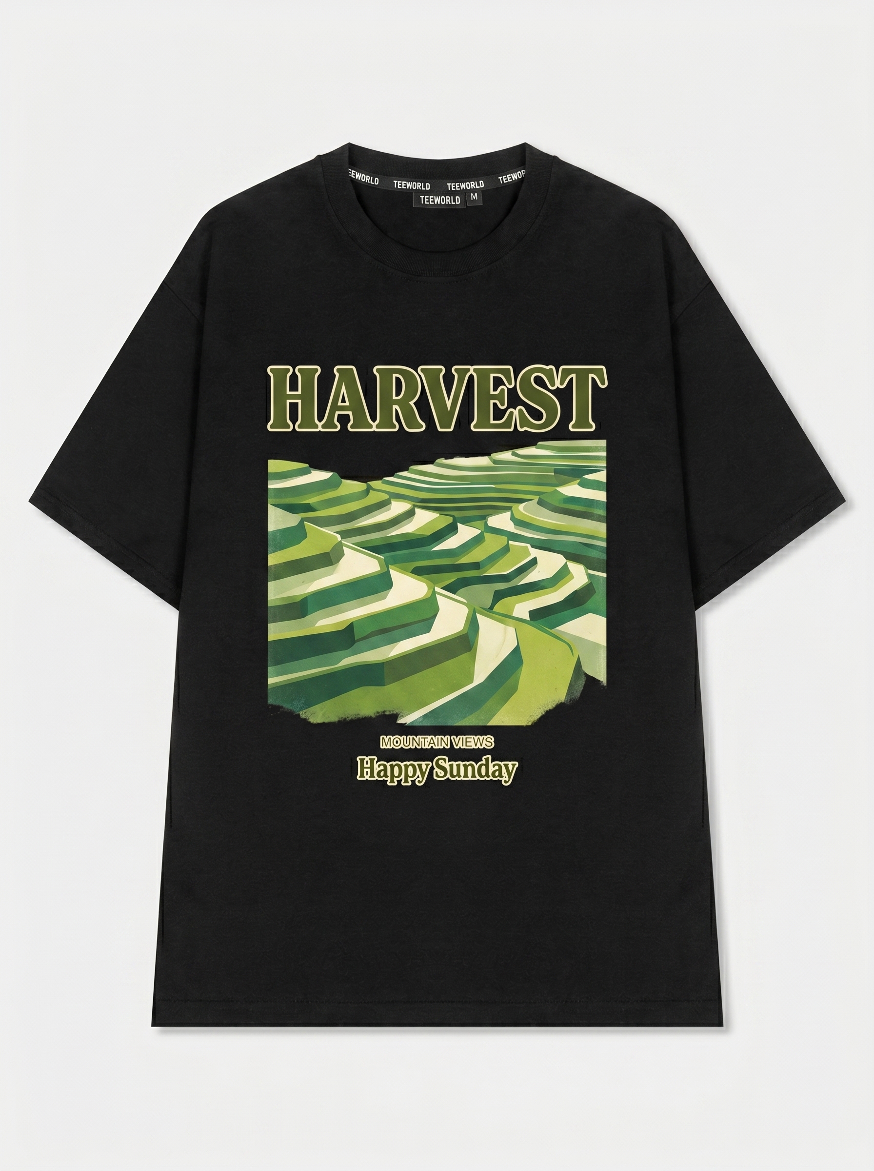 Green Terraces - Thiết kế độc quyền từ Happy Sunday. Chất liệu: Cotton Premium 250gsm, form oversize thoải mái. In ấn: Công nghệ in sắc nét, bền màu sau nhiều lần giặt. Phong cách: Đồ họa nghệ thuật, nổi bật.
