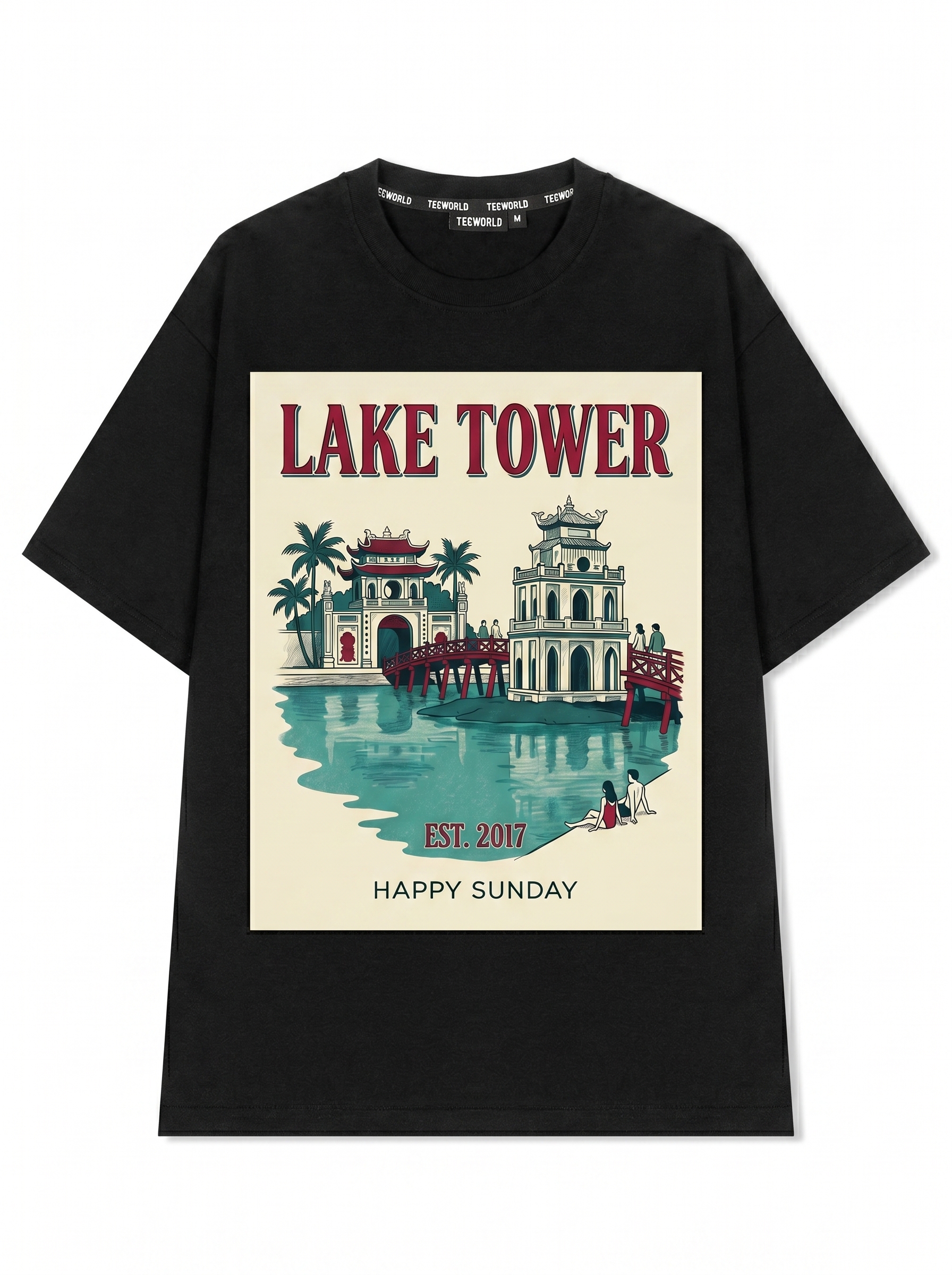 Hanoi Reflection - Thiết kế độc quyền từ Happy Sunday. Chất liệu: Cotton Premium 250gsm, form oversize thoải mái. In ấn: Công nghệ in sắc nét, bền màu sau nhiều lần giặt. Phong cách: Đồ họa nghệ thuật, nổi bật.