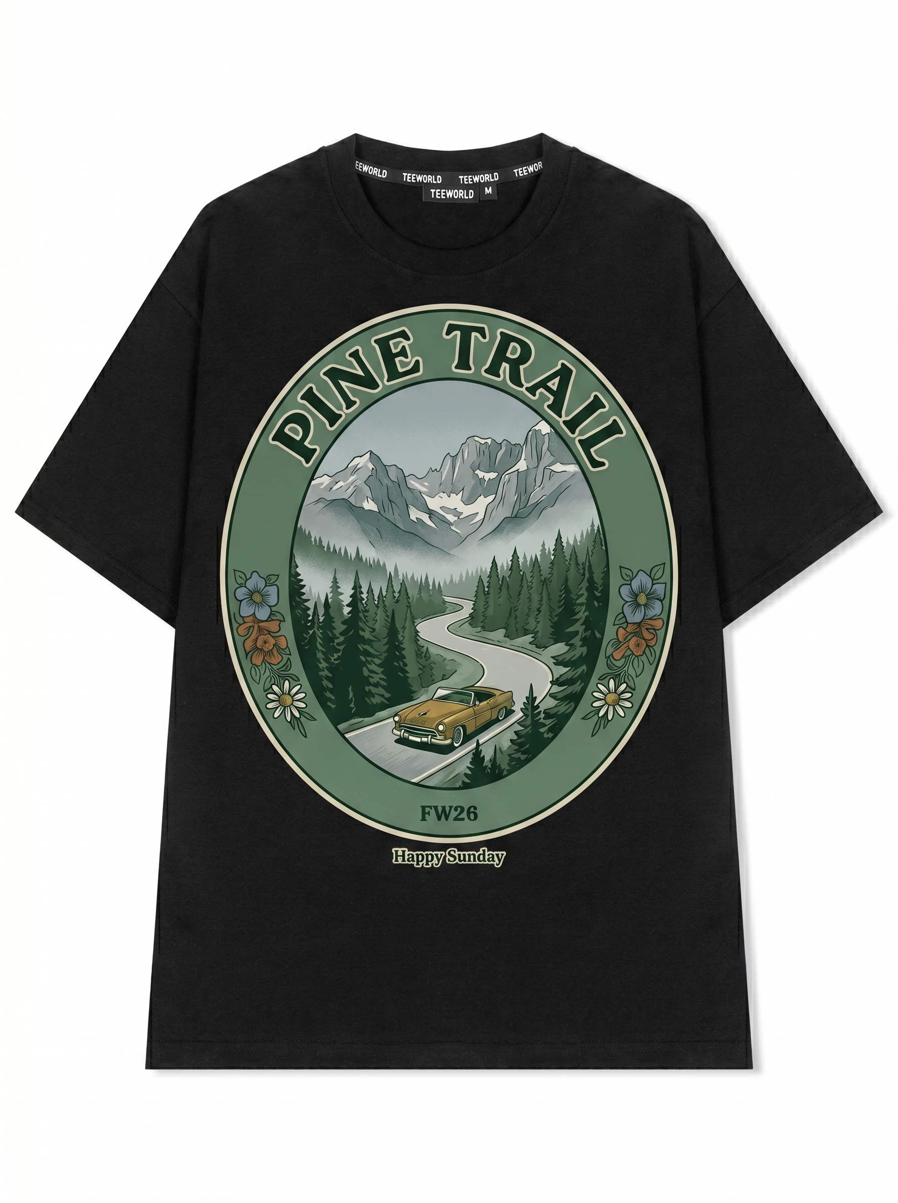 Highland Drive - Thiết kế độc quyền từ Happy Sunday. Chất liệu: Cotton Premium 250gsm, form oversize thoải mái. In ấn: Công nghệ in sắc nét, bền màu sau nhiều lần giặt. Phong cách: Đồ họa nghệ thuật, nổi bật.