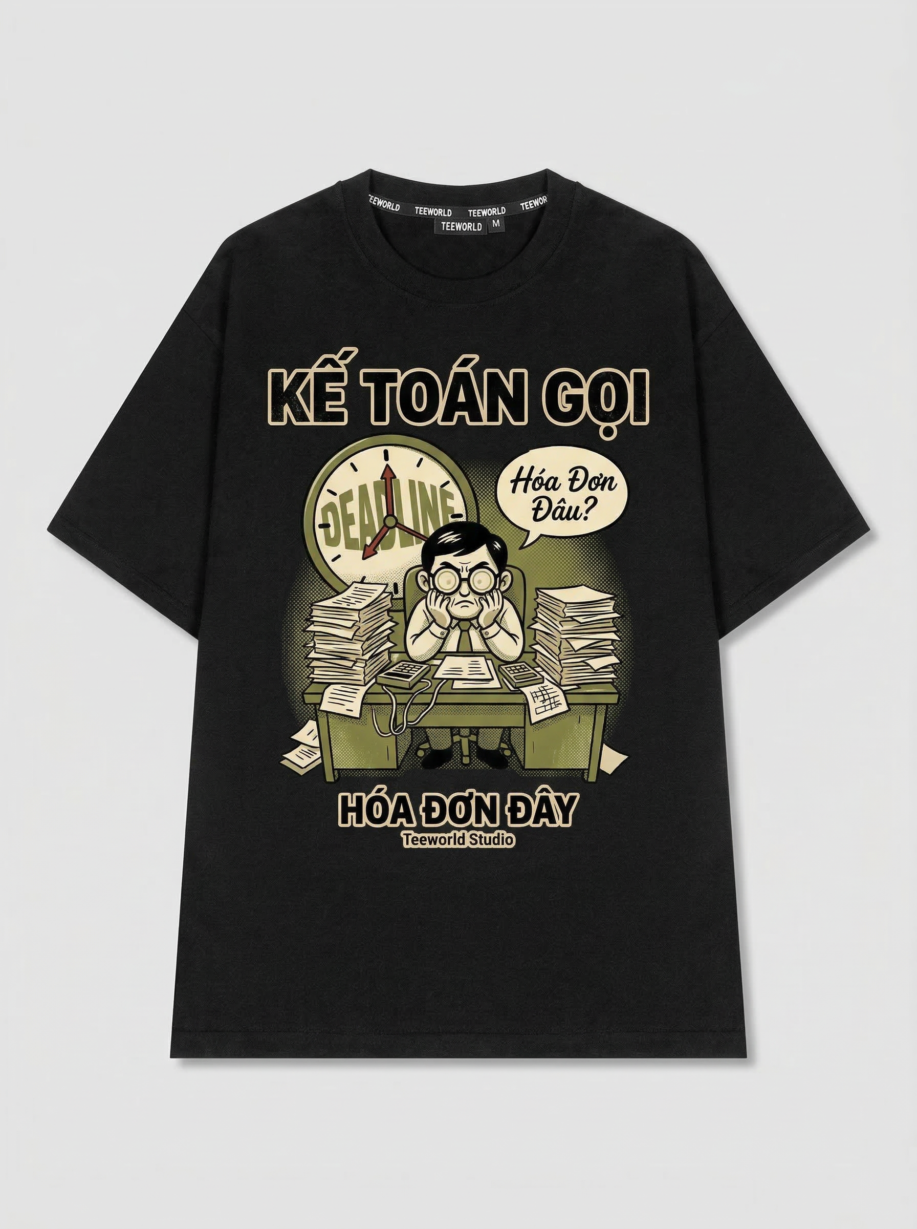 Hóa Đơn Áp Lực - Thiết kế độc quyền từ Teeworld. Chất liệu: Cotton Premium 250gsm, form oversize thoải mái. In ấn: Công nghệ in sắc nét, bền màu sau nhiều lần giặt. Phong cách: Streetwear hiện đại, dễ phối đồ.
