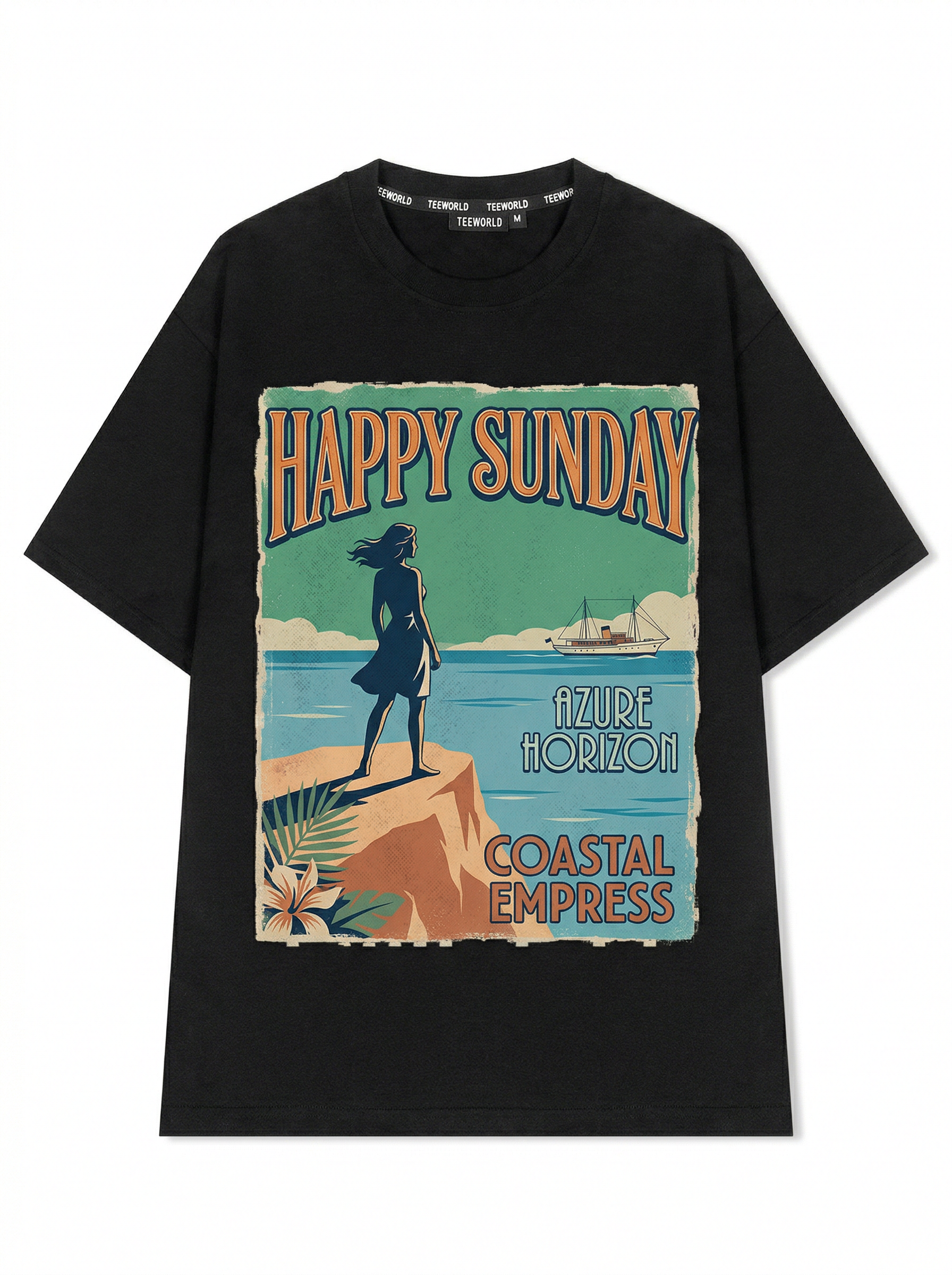 Horizon's Call - Thiết kế độc quyền từ Happy Sunday. Chất liệu: Cotton Premium 250gsm, form oversize thoải mái. In ấn: Công nghệ in sắc nét, bền màu sau nhiều lần giặt. Phong cách: Đồ họa nghệ thuật, nổi bật.