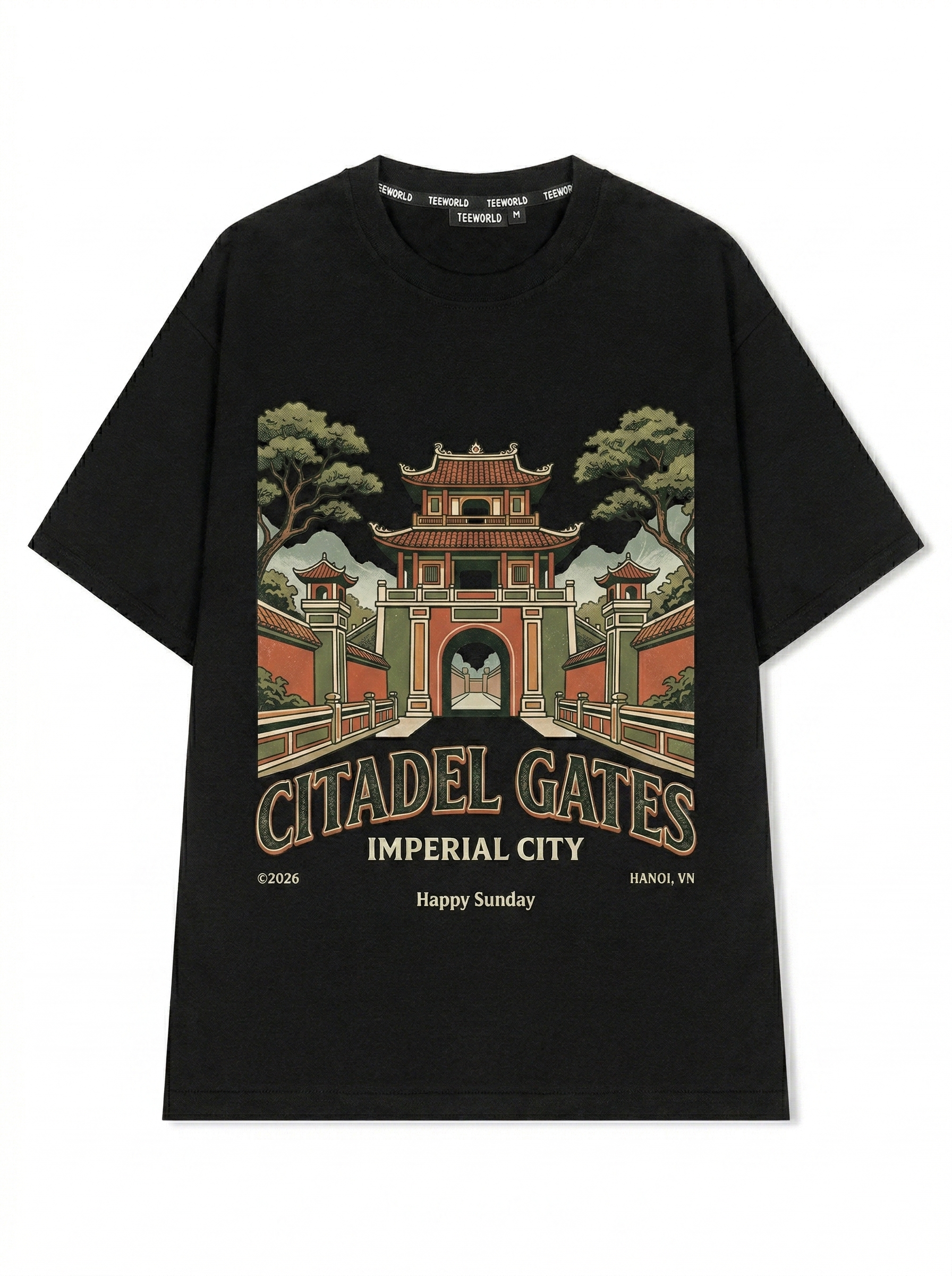 Imperial Passage - Thiết kế độc quyền từ Happy Sunday. Chất liệu: Cotton Premium 250gsm, form oversize thoải mái. In ấn: Công nghệ in sắc nét, bền màu sau nhiều lần giặt. Phong cách: Đồ họa nghệ thuật, nổi bật.