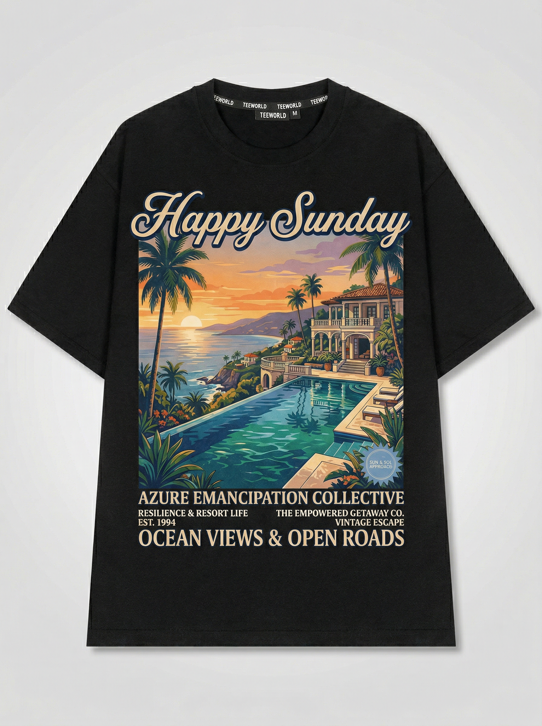 Infinite Horizons - Thiết kế độc quyền từ Happy Sunday. Chất liệu: Cotton Premium 250gsm, form oversize thoải mái. In ấn: Công nghệ in sắc nét, bền màu sau nhiều lần giặt. Phong cách: Đồ họa nghệ thuật, nổi bật.