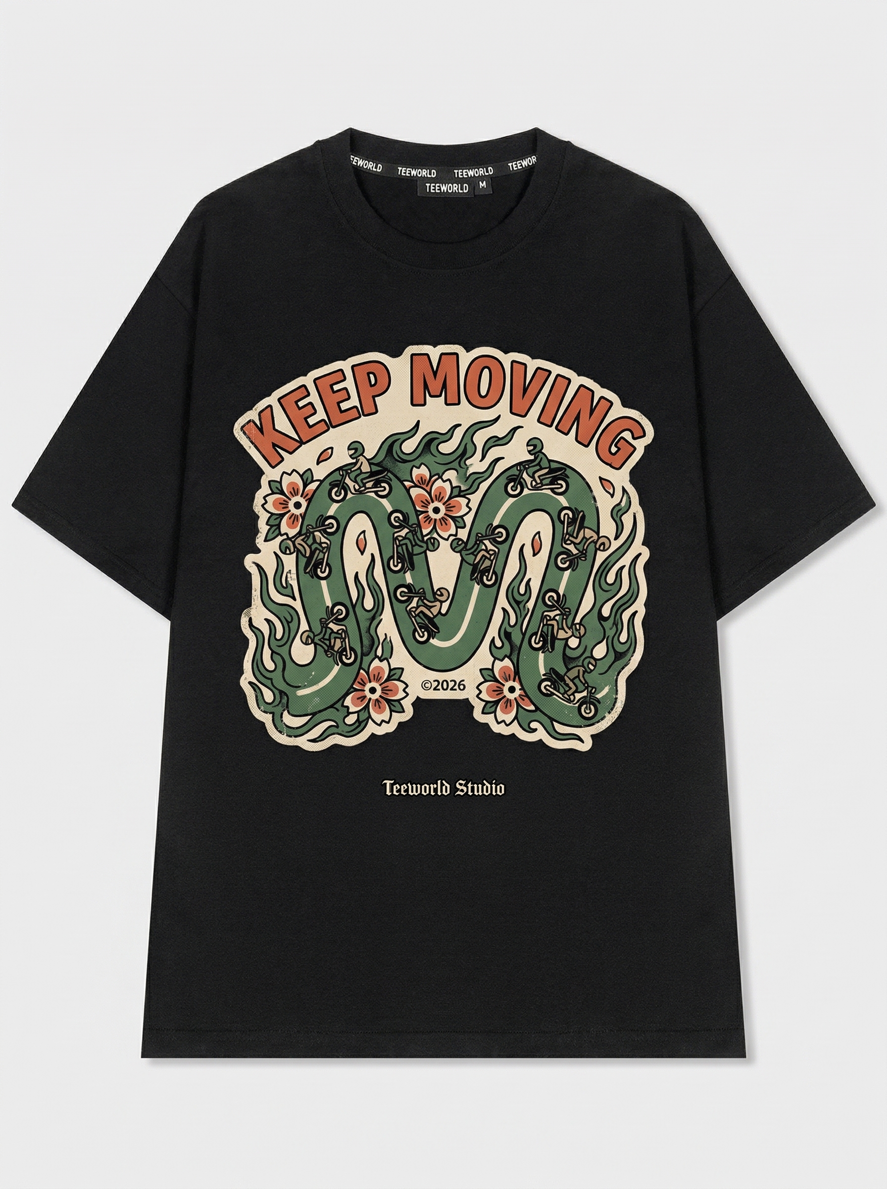 Infinite Ride - Thiết kế độc quyền từ Teeworld. Chất liệu: Cotton Premium 250gsm, form oversize thoải mái. In ấn: Công nghệ in sắc nét, bền màu sau nhiều lần giặt. Phong cách: Streetwear hiện đại, dễ phối đồ.