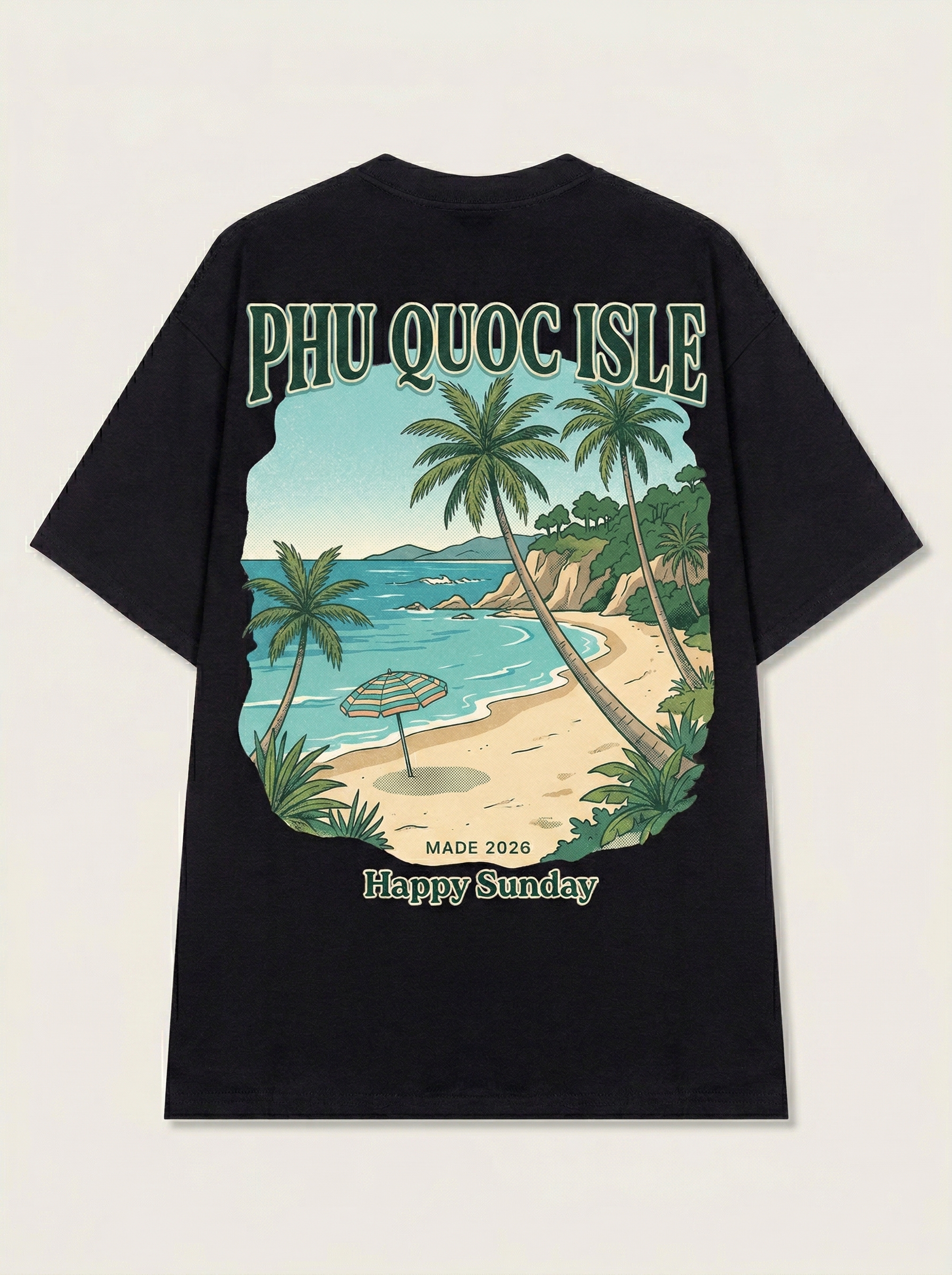 Island Retreat - Thiết kế độc quyền từ Happy Sunday. Chất liệu: Cotton Premium 250gsm, form oversize thoải mái. In ấn: Công nghệ in sắc nét, bền màu sau nhiều lần giặt. Phong cách: Đồ họa nghệ thuật, nổi bật.