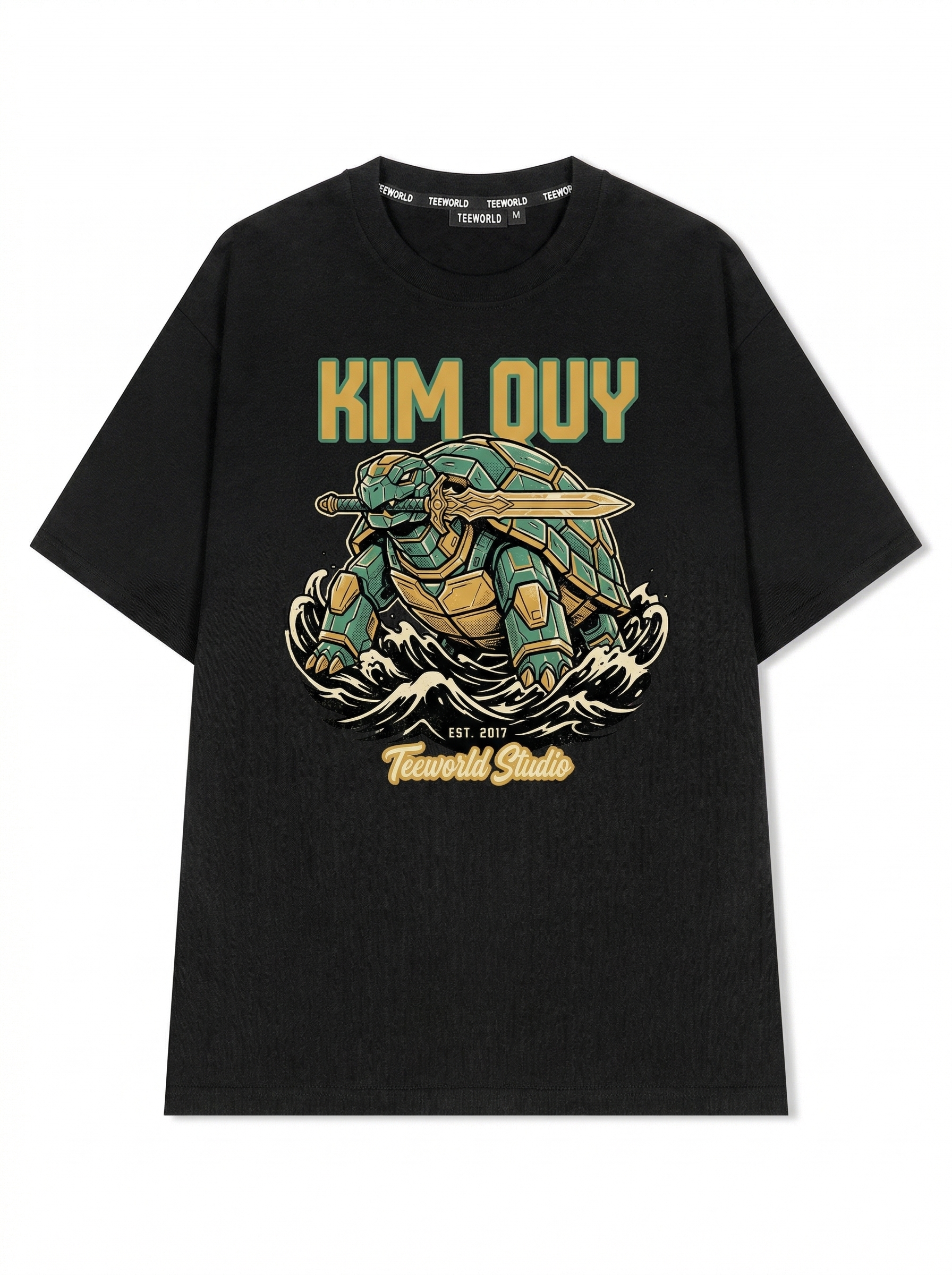 Kim Quy Giáp - Thiết kế độc quyền từ Teeworld. Chất liệu: Cotton Premium 250gsm, form oversize thoải mái. In ấn: Công nghệ in sắc nét, bền màu sau nhiều lần giặt. Phong cách: Streetwear hiện đại, dễ phối đồ.