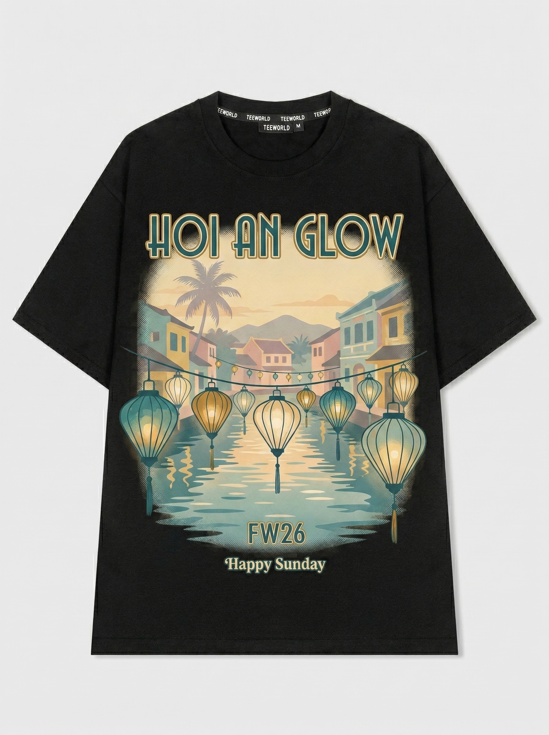 Lantern Nights - Thiết kế độc quyền từ Happy Sunday. Chất liệu: Cotton Premium 250gsm, form oversize thoải mái. In ấn: Công nghệ in sắc nét, bền màu sau nhiều lần giặt. Phong cách: Đồ họa nghệ thuật, nổi bật.