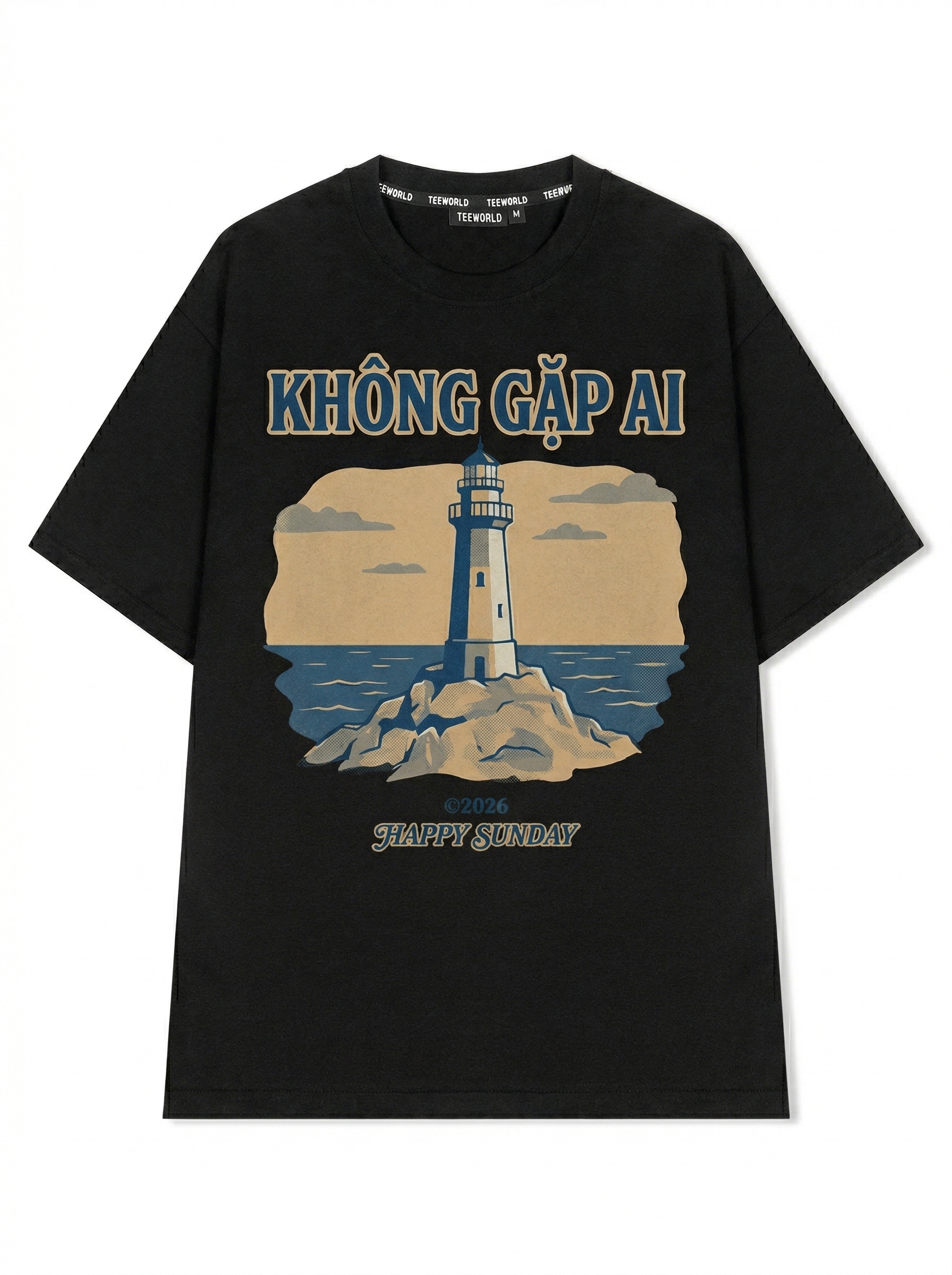 Lighthouse Solitude - Thiết kế độc quyền từ Happy Sunday. Chất liệu: Cotton Premium 250gsm, form oversize thoải mái. In ấn: Công nghệ in sắc nét, bền màu sau nhiều lần giặt. Phong cách: Streetwear hiện đại, dễ phối đồ.