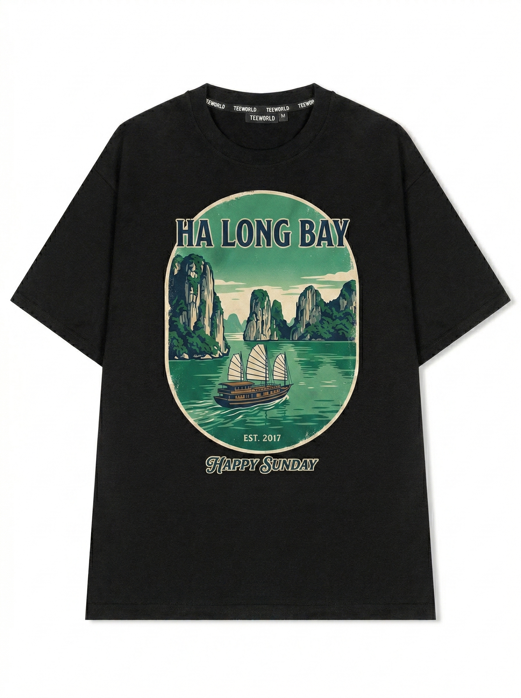 Limestone Cruise - Thiết kế độc quyền từ Happy Sunday. Chất liệu: Cotton Premium 250gsm, form oversize thoải mái. In ấn: Công nghệ in sắc nét, bền màu sau nhiều lần giặt. Phong cách: Đồ họa nghệ thuật, nổi bật.