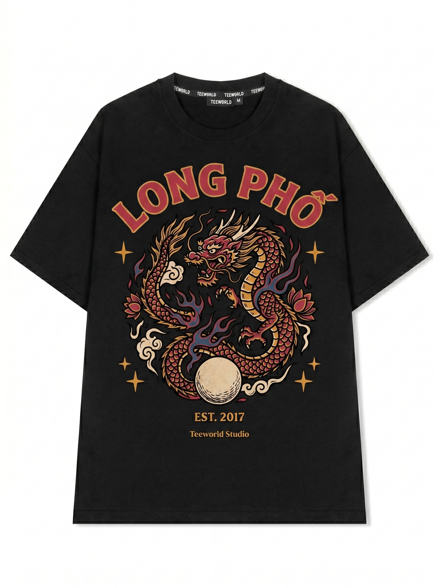 Long Thần - Thiết kế độc quyền từ Teeworld. Chất liệu: Cotton Premium 250gsm, form oversize thoải mái. In ấn: Công nghệ in sắc nét, bền màu sau nhiều lần giặt. Phong cách: Streetwear hiện đại, dễ phối đồ.