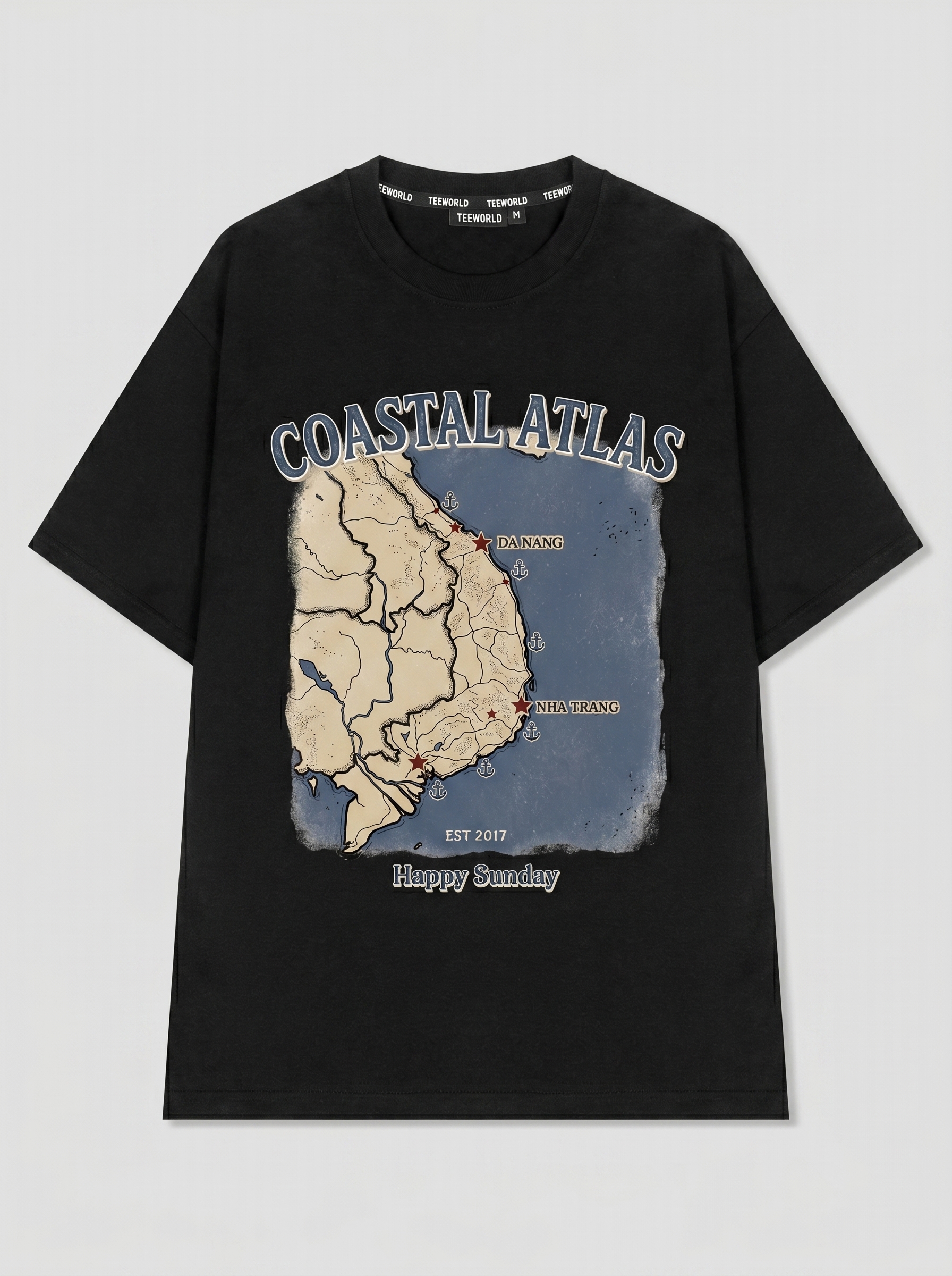 Maritime Chart - Thiết kế độc quyền từ Happy Sunday. Chất liệu: Cotton Premium 250gsm, form oversize thoải mái. In ấn: Công nghệ in sắc nét, bền màu sau nhiều lần giặt. Phong cách: Đồ họa nghệ thuật, nổi bật.