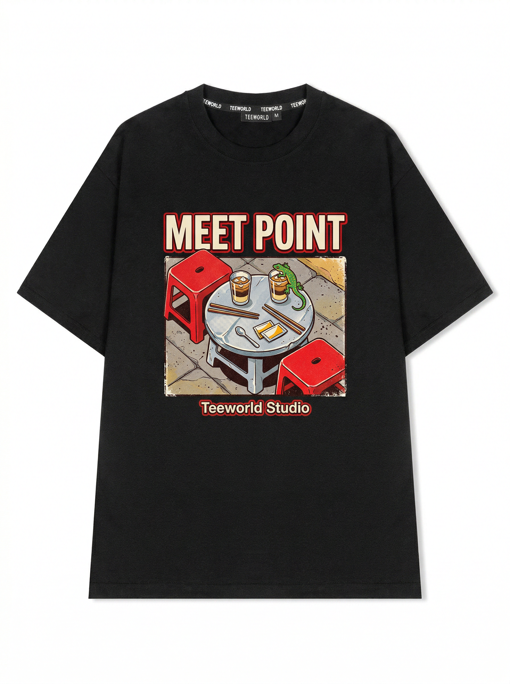 Meet Point - Thiết kế độc quyền từ Teeworld. Chất liệu: Cotton Premium 250gsm, form oversize thoải mái. In ấn: Công nghệ in sắc nét, bền màu sau nhiều lần giặt. Phong cách: Streetwear hiện đại, dễ phối đồ.
