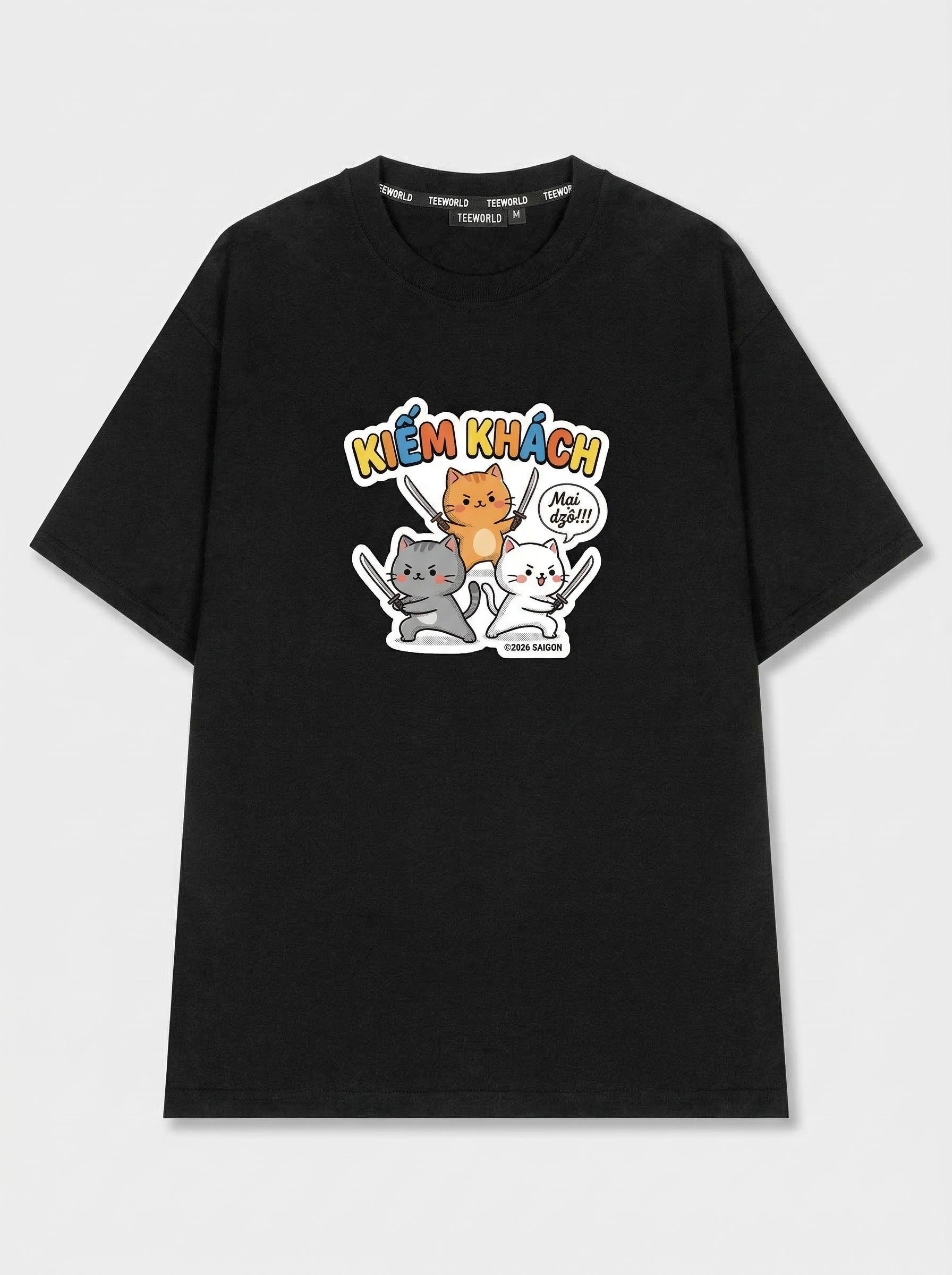 Mèo Kiếm - Thiết kế độc quyền từ Teeworld. Chất liệu: Cotton Premium 250gsm, form oversize thoải mái. In ấn: Công nghệ in sắc nét, bền màu sau nhiều lần giặt. Phong cách: Streetwear hiện đại, dễ phối đồ.