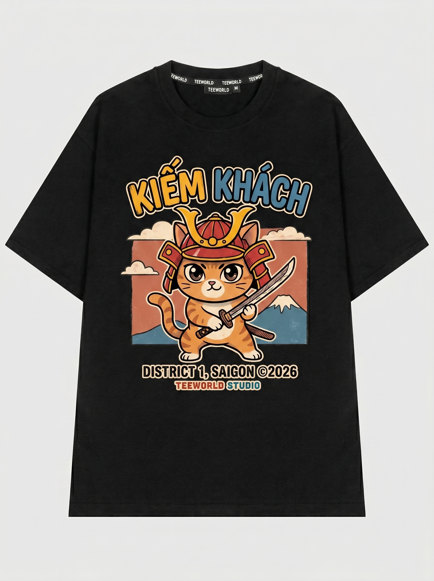 Mèo Kiếm - Thiết kế độc quyền từ Teeworld. Chất liệu: Cotton Premium 250gsm, form oversize thoải mái. In ấn: Công nghệ in sắc nét, bền màu sau nhiều lần giặt. Phong cách: Streetwear hiện đại, dễ phối đồ.