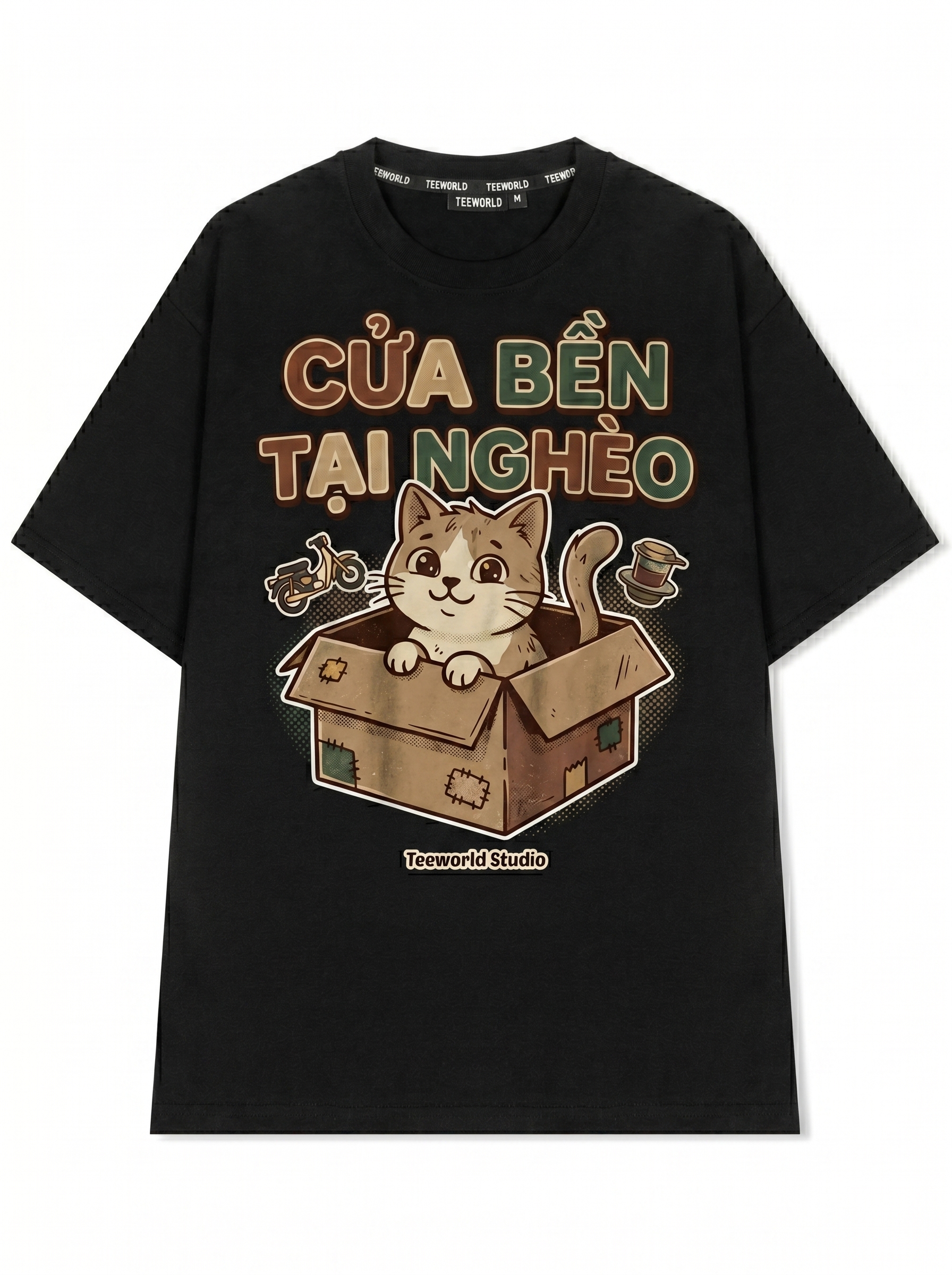 Mèo Nghèo - Thiết kế độc quyền từ Teeworld. Chất liệu: Cotton Premium 250gsm, form oversize thoải mái. In ấn: Công nghệ in sắc nét, bền màu sau nhiều lần giặt. Phong cách: Streetwear hiện đại, dễ phối đồ.