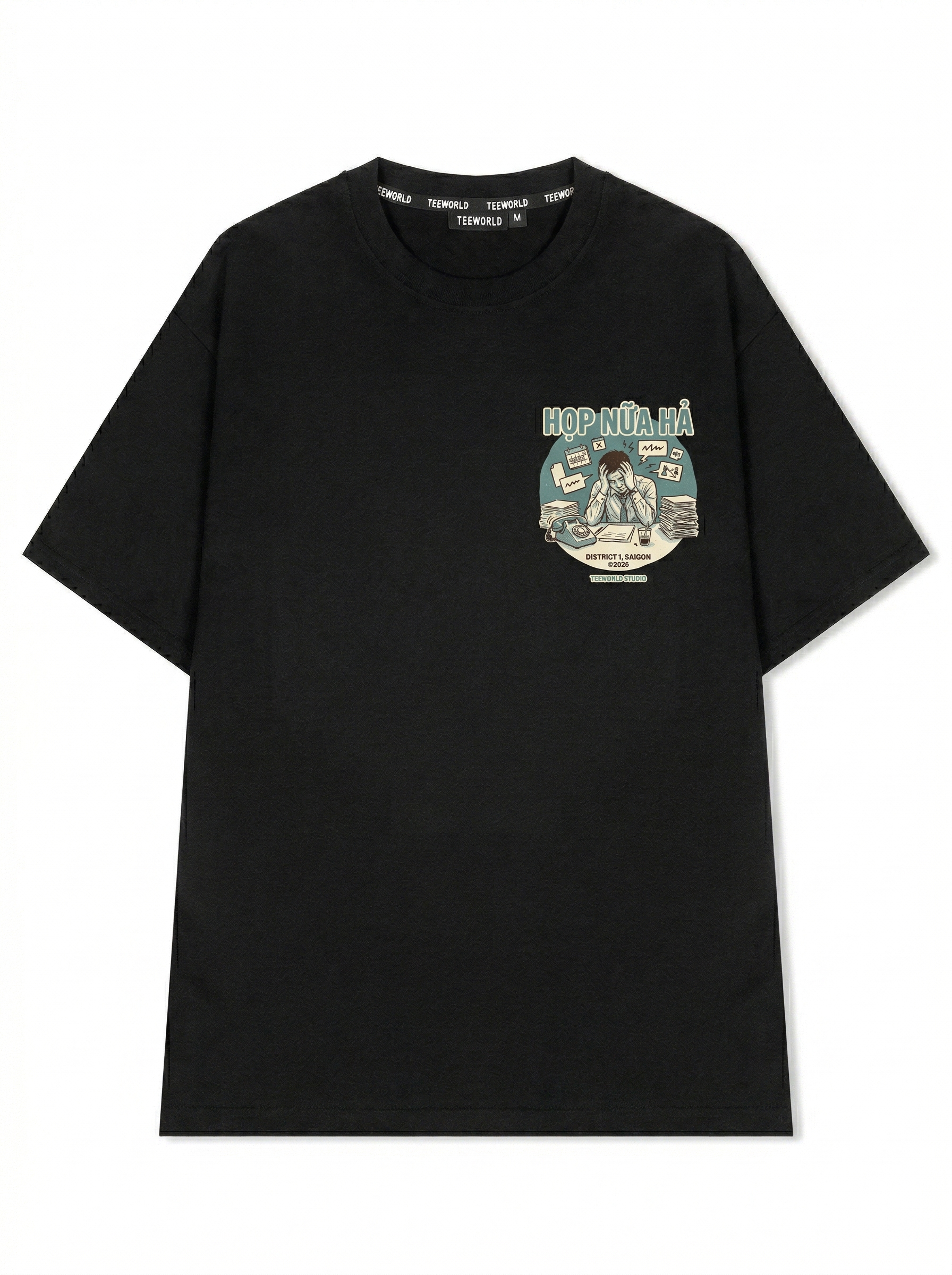 Mệt Mỏi Meeting - Thiết kế độc quyền từ Teeworld. Chất liệu: Cotton Premium 250gsm, form oversize thoải mái. In ấn: Công nghệ in sắc nét, bền màu sau nhiều lần giặt. Phong cách: Streetwear hiện đại, dễ phối đồ.