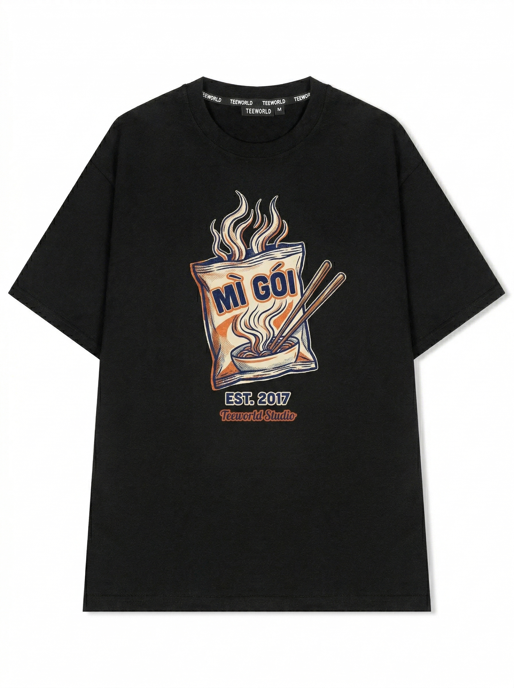 Mì Gói Life - Thiết kế độc quyền từ Teeworld. Chất liệu: Cotton Premium 250gsm, form oversize thoải mái. In ấn: Công nghệ in sắc nét, bền màu sau nhiều lần giặt. Phong cách: Streetwear hiện đại, dễ phối đồ.