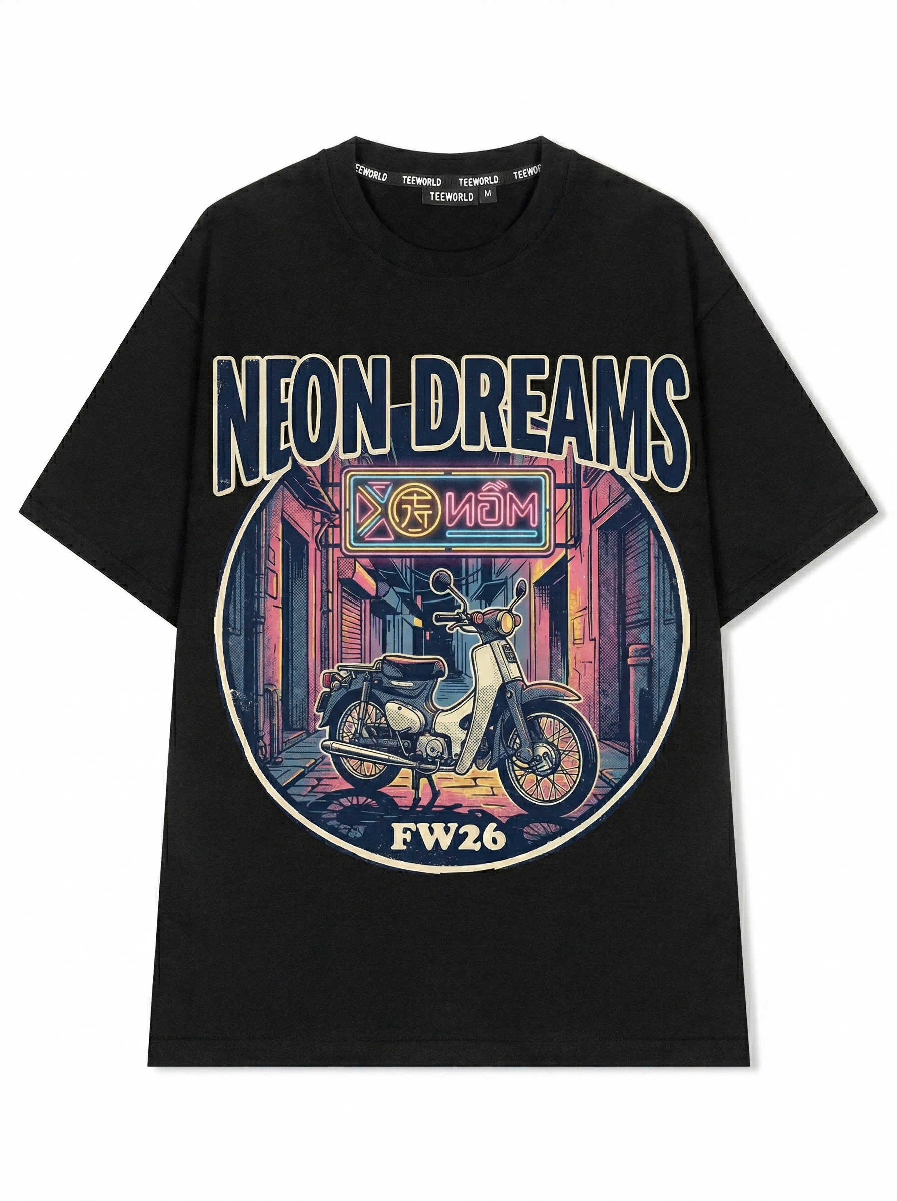 Midnight Ride - Thiết kế độc quyền từ Teeworld. Chất liệu: Cotton Premium 250gsm, form oversize thoải mái. In ấn: Công nghệ in sắc nét, bền màu sau nhiều lần giặt. Phong cách: Streetwear hiện đại, dễ phối đồ.