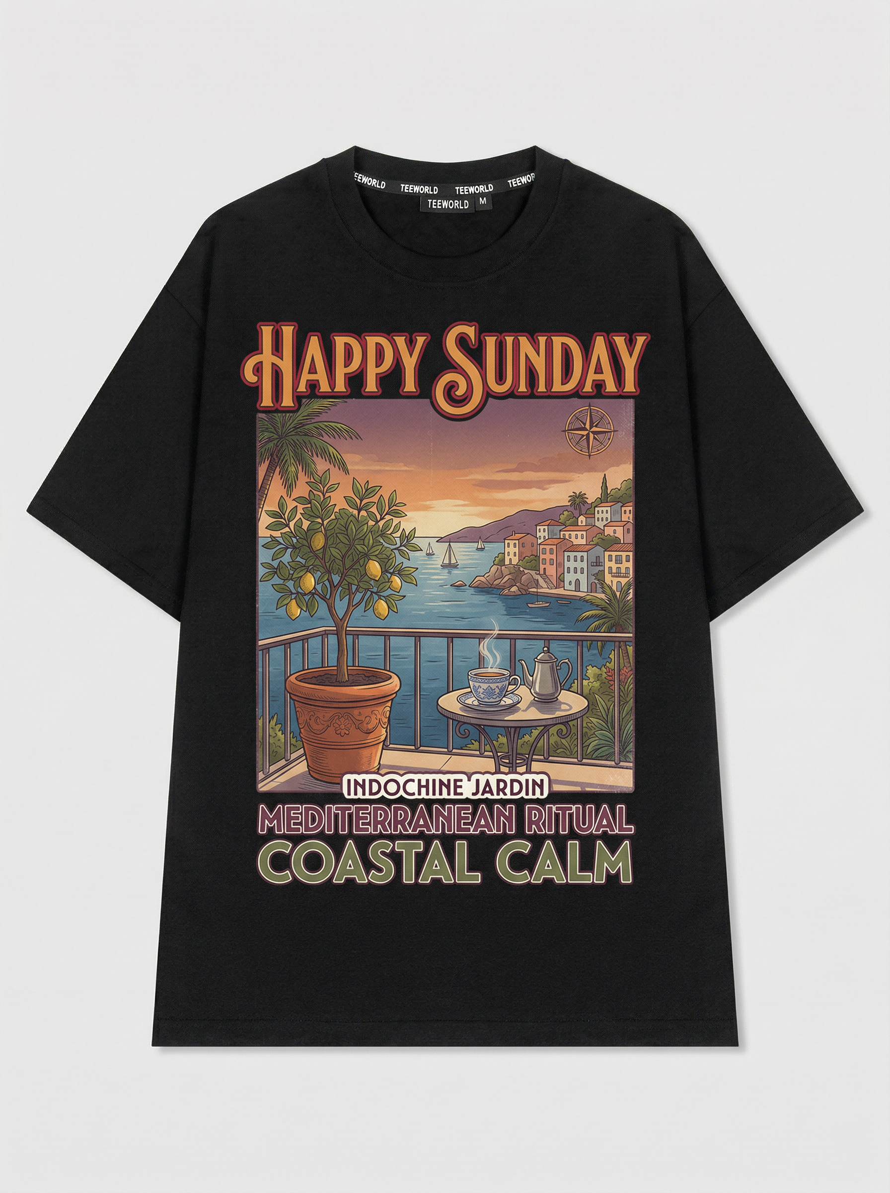 Morning's Embrace - Thiết kế độc quyền từ Happy Sunday. Chất liệu: Cotton Premium 250gsm, form oversize thoải mái. In ấn: Công nghệ in sắc nét, bền màu sau nhiều lần giặt. Phong cách: Đồ họa nghệ thuật, nổi bật.