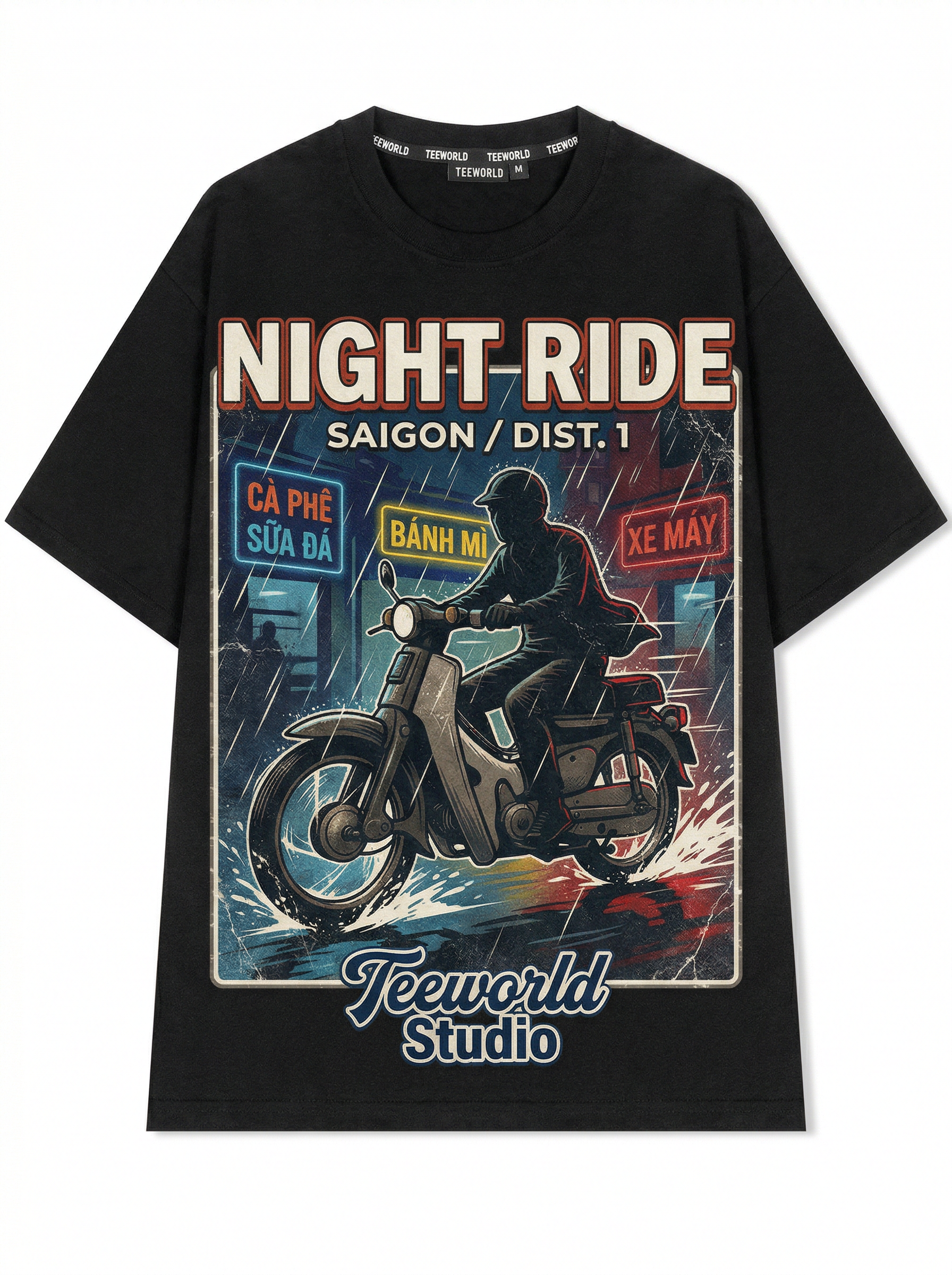 Mưa Phố - Thiết kế độc quyền từ Teeworld. Chất liệu: Cotton Premium 250gsm, form oversize thoải mái. In ấn: Công nghệ in sắc nét, bền màu sau nhiều lần giặt. Phong cách: Streetwear hiện đại, dễ phối đồ.