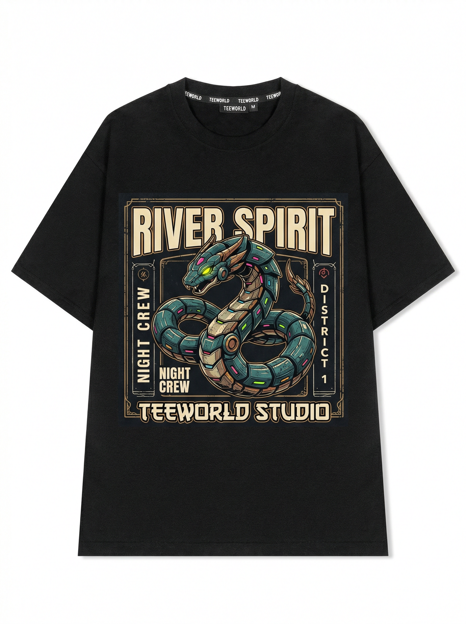 Naga Current - Thiết kế độc quyền từ Teeworld. Chất liệu: Cotton Premium 250gsm, form oversize thoải mái. In ấn: Công nghệ in sắc nét, bền màu sau nhiều lần giặt. Phong cách: Streetwear hiện đại, dễ phối đồ.