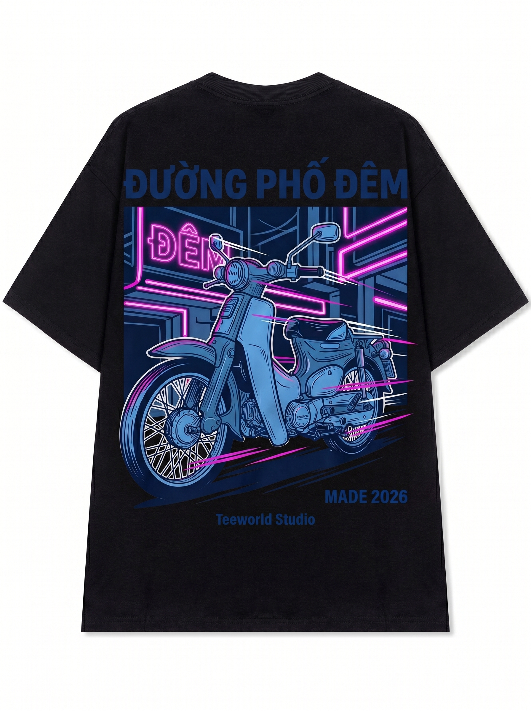 Night Ride - Thiết kế độc quyền từ Teeworld. Chất liệu: Cotton Premium 250gsm, form oversize thoải mái. In ấn: Công nghệ in sắc nét, bền màu sau nhiều lần giặt. Phong cách: Streetwear hiện đại, dễ phối đồ.