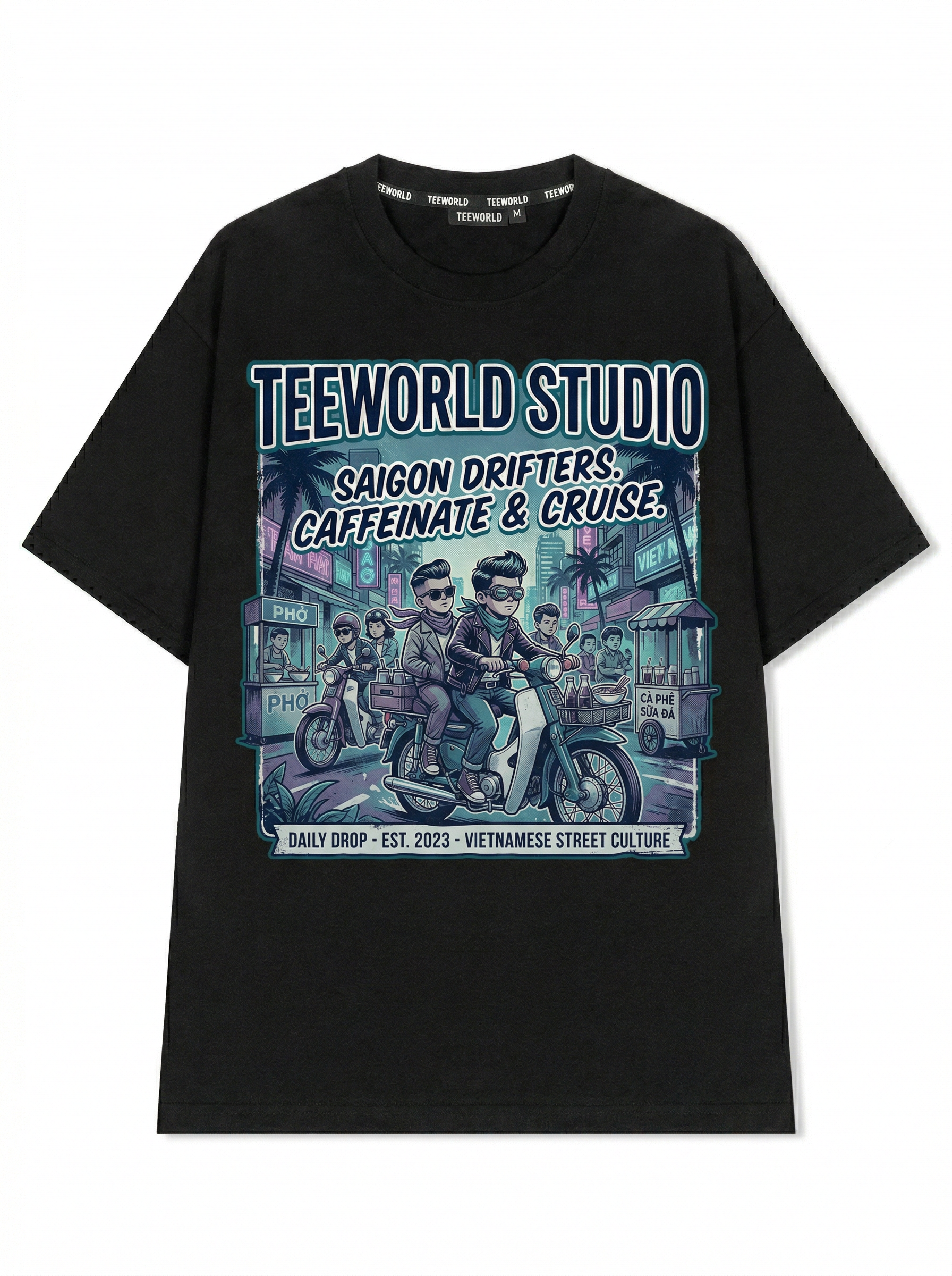 Thiết kế độc quyền từ Teeworld. Chất liệu: Cotton Premium 250gsm, form oversize thoải mái. In ấn: Công nghệ in sắc nét, bền màu sau nhiều lần giặt. Phong cách: Streetwear hiện đại, dễ phối đồ.