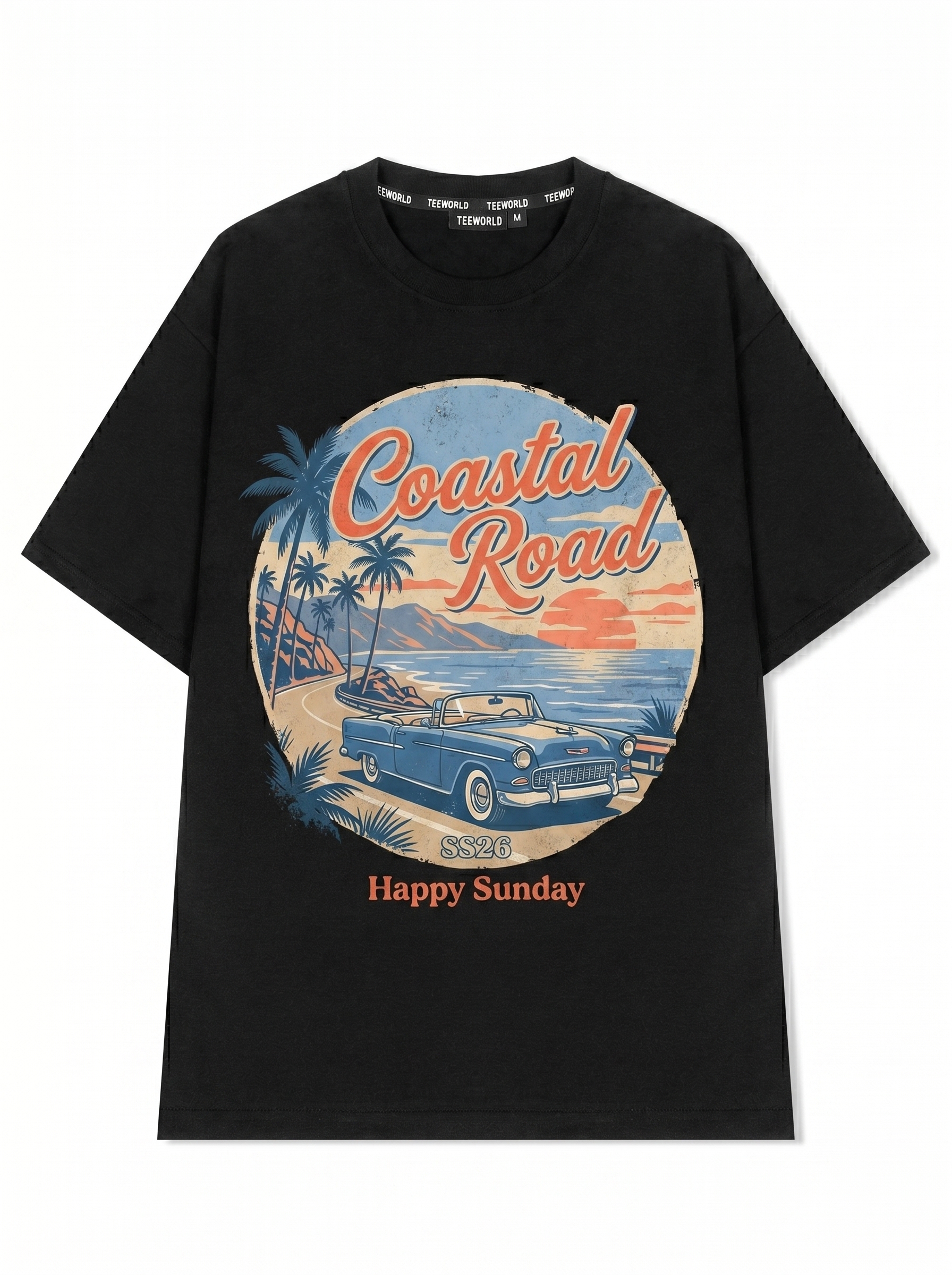 Ocean Drive - Thiết kế độc quyền từ Happy Sunday. Chất liệu: Cotton Premium 250gsm, form oversize thoải mái. In ấn: Công nghệ in sắc nét, bền màu sau nhiều lần giặt. Phong cách: Đồ họa nghệ thuật, nổi bật.