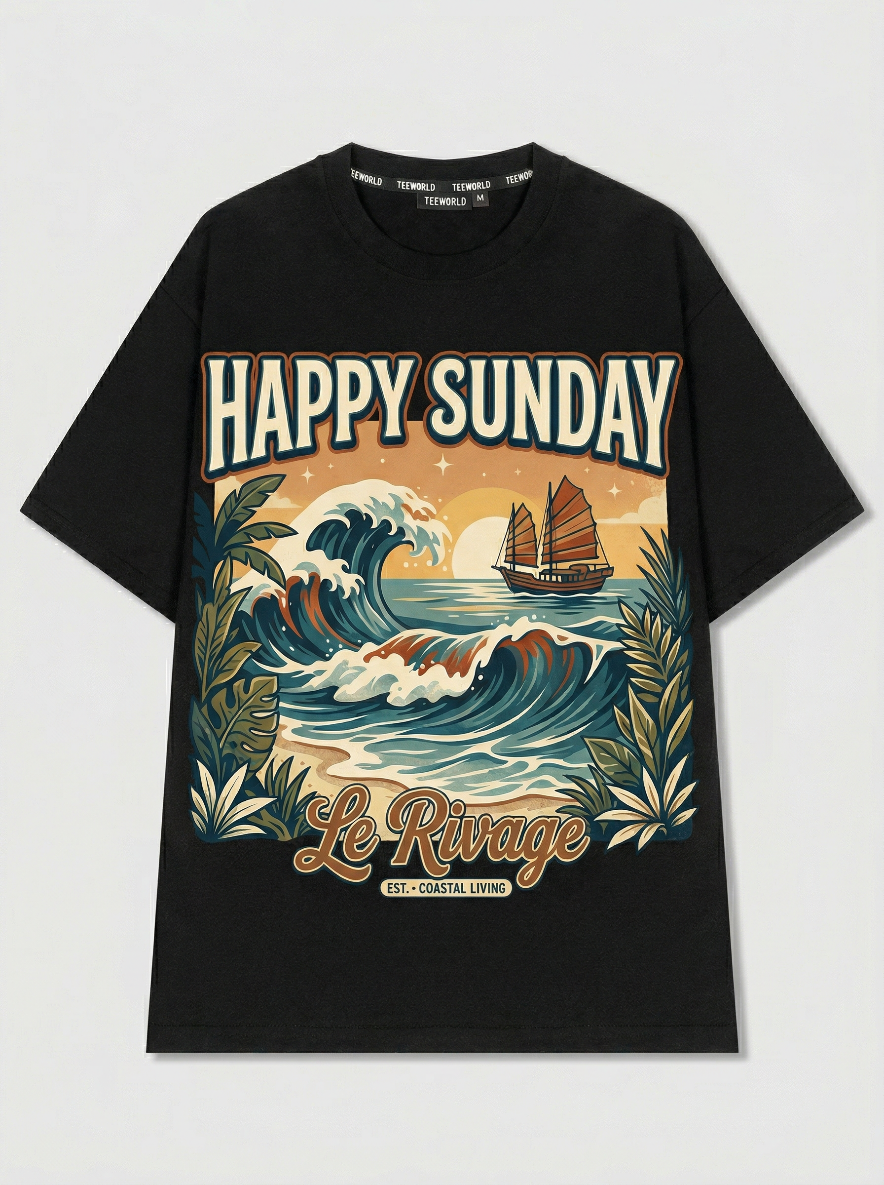 Ocean Whisper - Thiết kế độc quyền từ Happy Sunday. Chất liệu: Cotton Premium 250gsm, form oversize thoải mái. In ấn: Công nghệ in sắc nét, bền màu sau nhiều lần giặt. Phong cách: Đồ họa nghệ thuật, nổi bật.