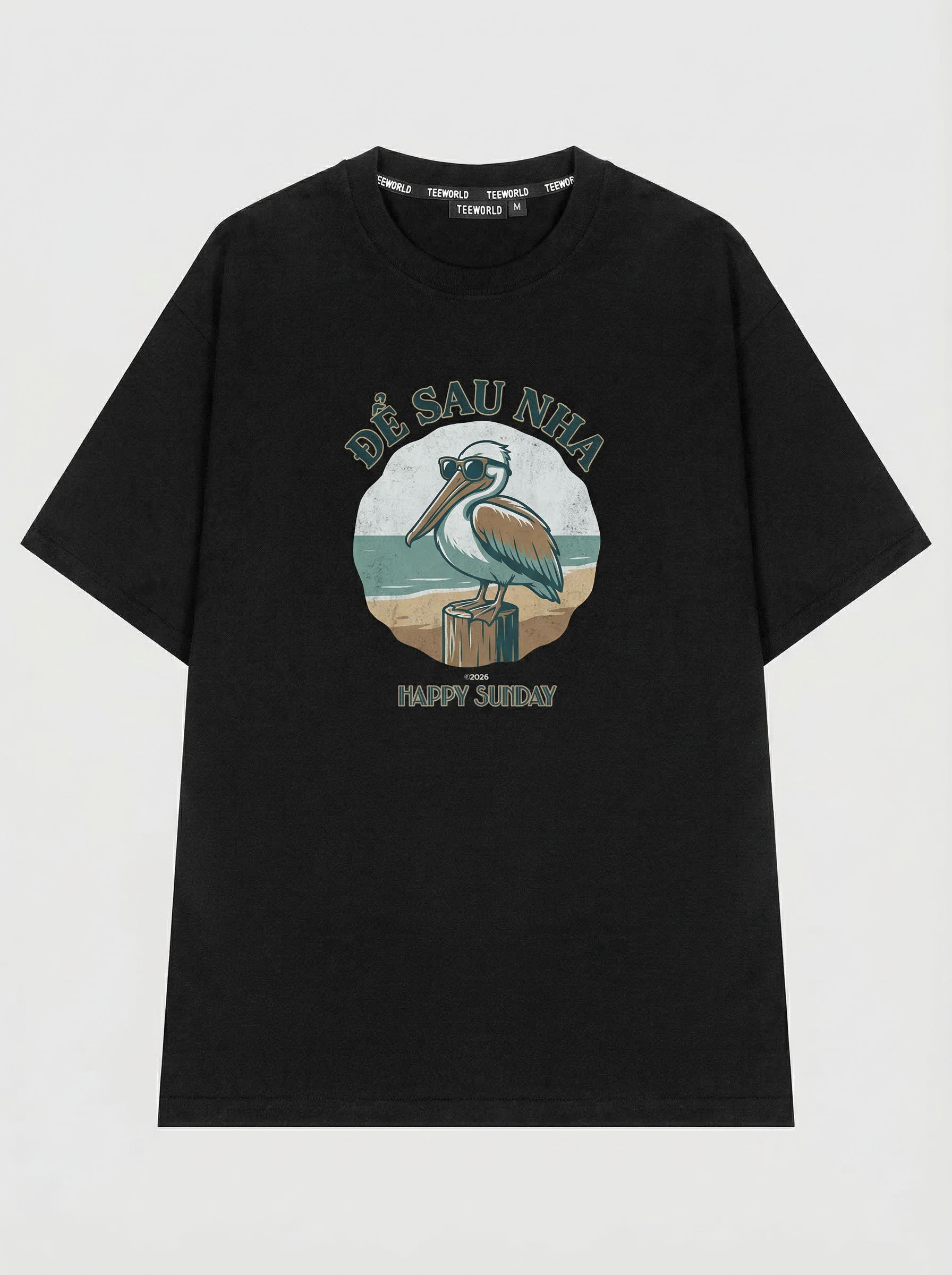 Pelican Hideaway - Thiết kế độc quyền từ Happy Sunday. Chất liệu: Cotton Premium 250gsm, form oversize thoải mái. In ấn: Công nghệ in sắc nét, bền màu sau nhiều lần giặt. Phong cách: Streetwear hiện đại, dễ phối đồ.