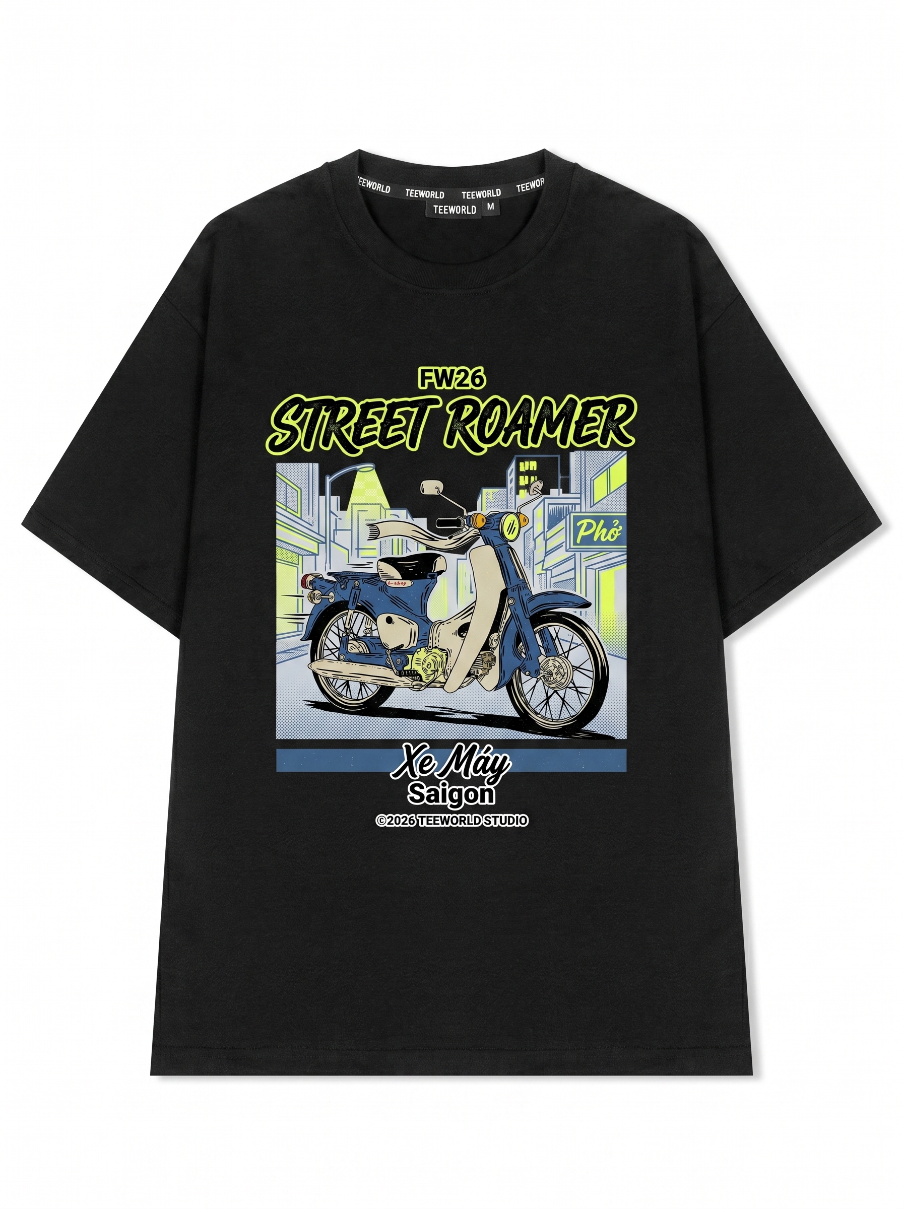 Phố Xe - Thiết kế độc quyền từ Teeworld. Chất liệu: Cotton Premium 250gsm, form oversize thoải mái. In ấn: Công nghệ in sắc nét, bền màu sau nhiều lần giặt. Phong cách: Streetwear hiện đại, dễ phối đồ.