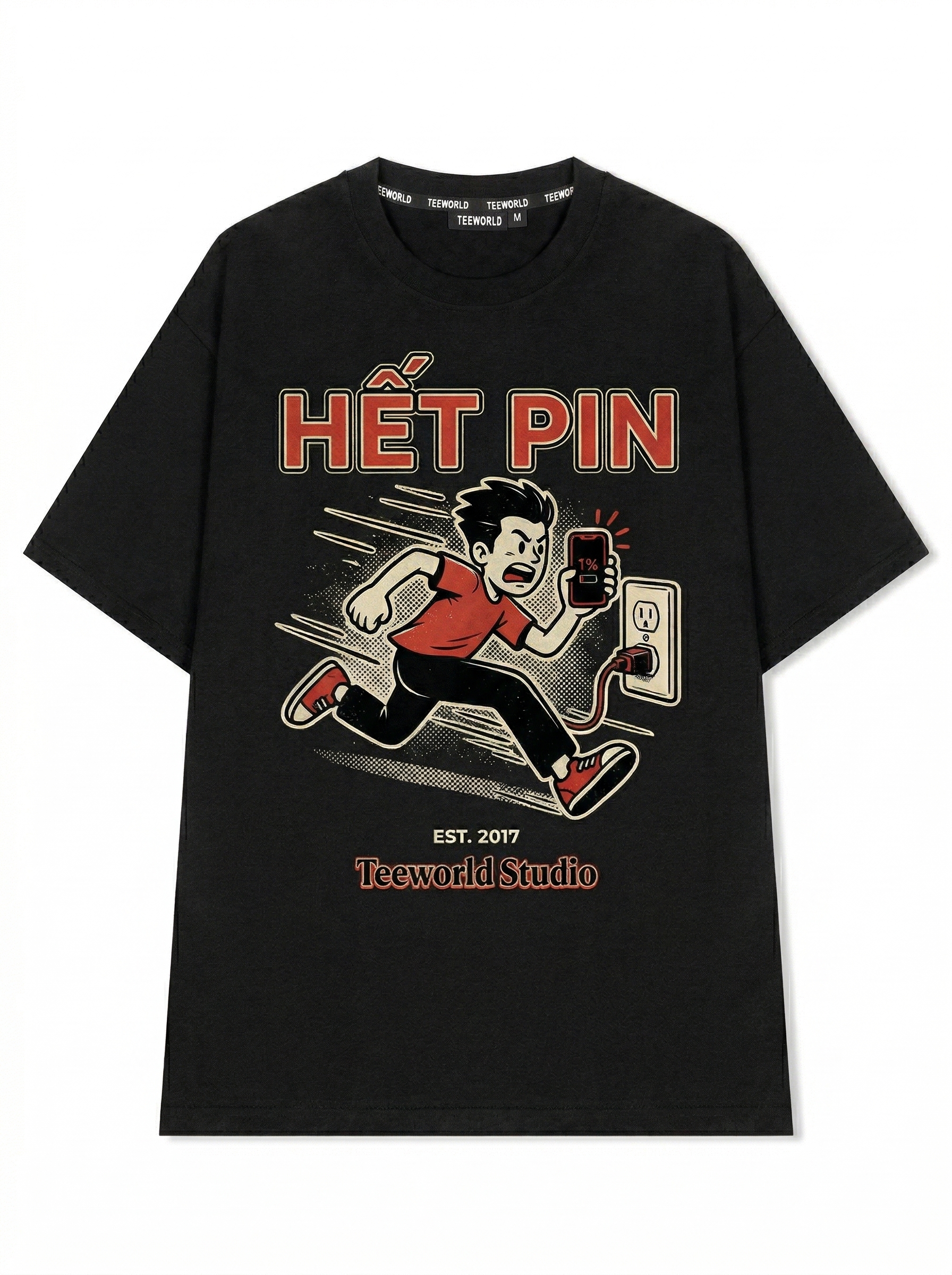 Pin Yếu - Thiết kế độc quyền từ Teeworld. Chất liệu: Cotton Premium 250gsm, form oversize thoải mái. In ấn: Công nghệ in sắc nét, bền màu sau nhiều lần giặt. Phong cách: Streetwear hiện đại, dễ phối đồ.