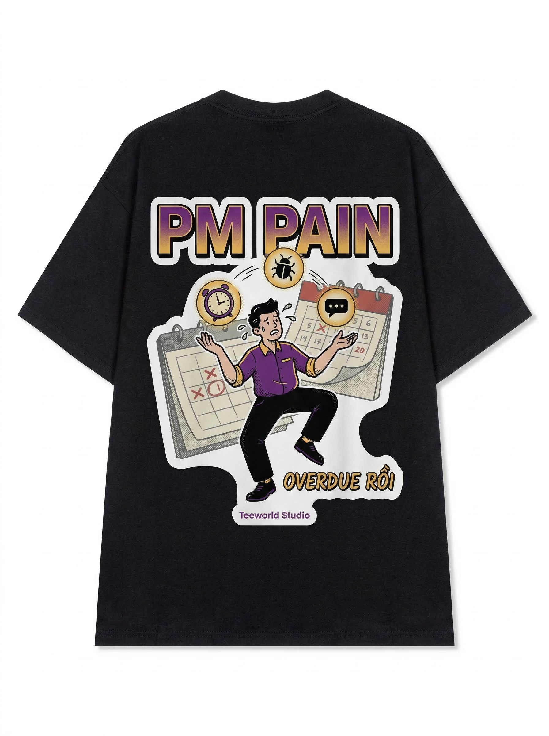 PM Áp Lực - Thiết kế độc quyền từ Teeworld. Chất liệu: Cotton Premium 250gsm, form oversize thoải mái. In ấn: Công nghệ in sắc nét, bền màu sau nhiều lần giặt. Phong cách: Streetwear hiện đại, dễ phối đồ.