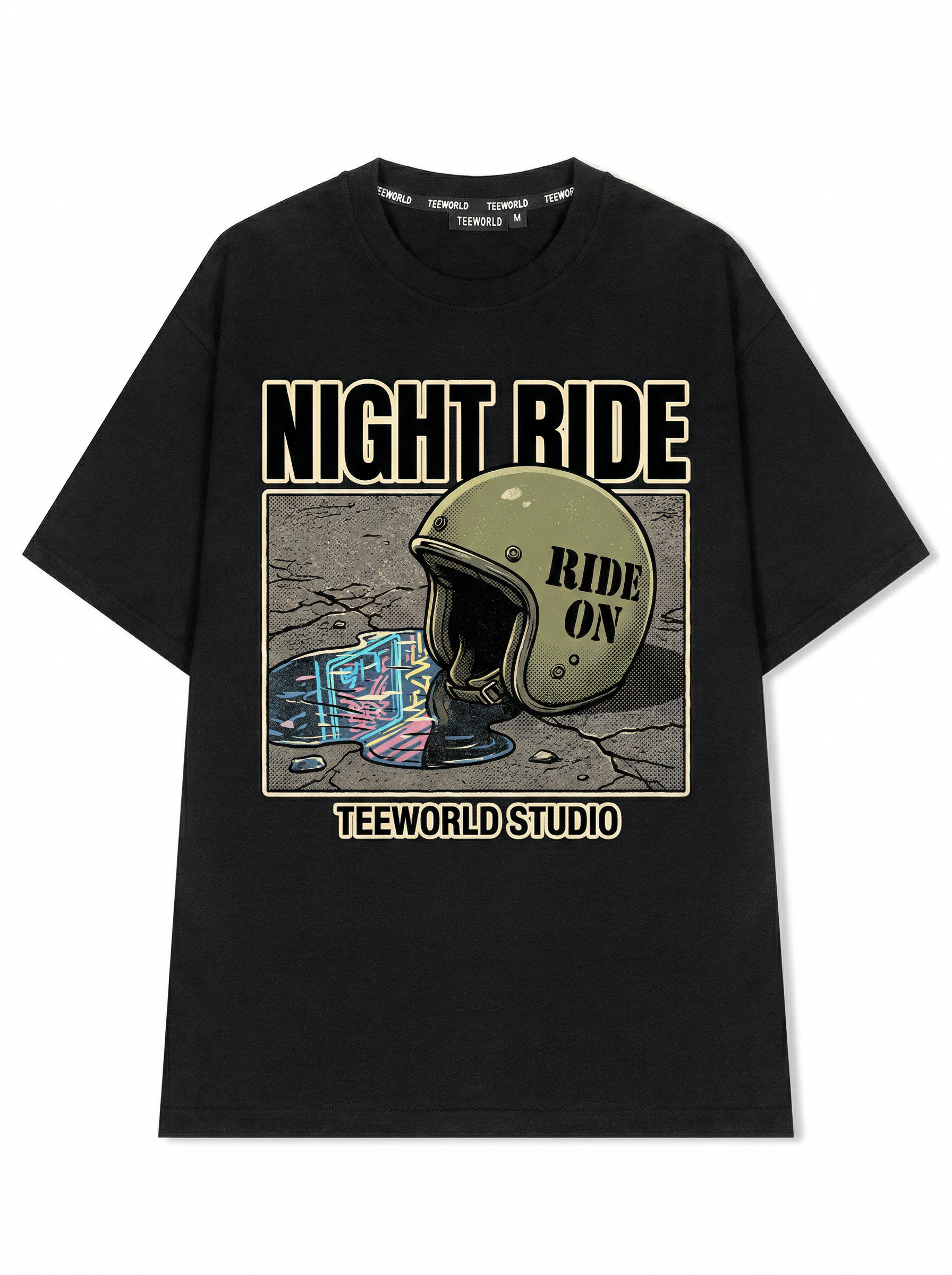 Puddle Ride - Thiết kế độc quyền từ Teeworld. Chất liệu: Cotton Premium 250gsm, form oversize thoải mái. In ấn: Công nghệ in sắc nét, bền màu sau nhiều lần giặt. Phong cách: Streetwear hiện đại, dễ phối đồ.