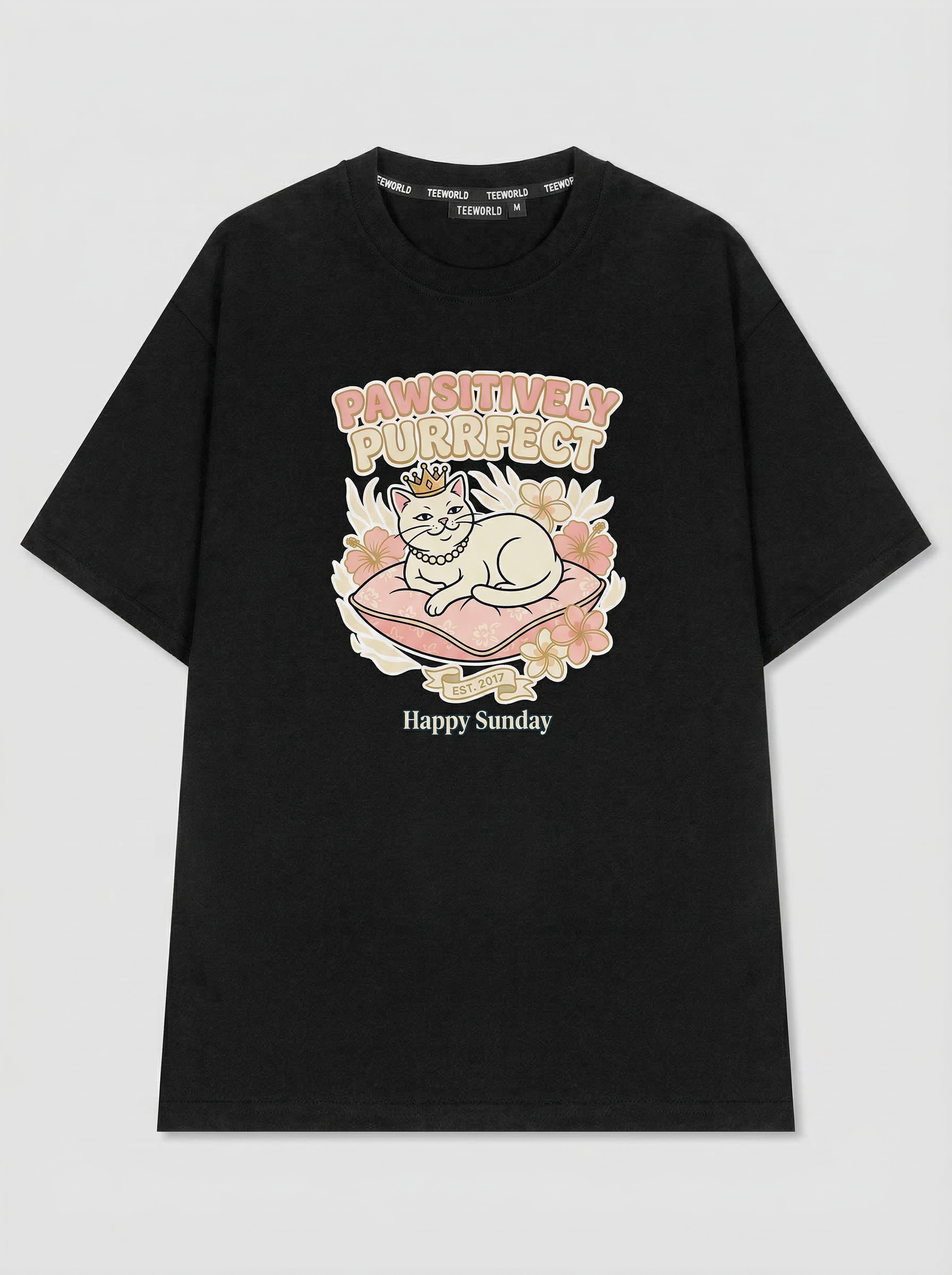 Purrfect Cat - Thiết kế độc quyền từ Happy Sunday. Chất liệu: Cotton Premium 250gsm, form oversize thoải mái. In ấn: Công nghệ in sắc nét, bền màu sau nhiều lần giặt. Phong cách: Streetwear hiện đại, dễ phối đồ.