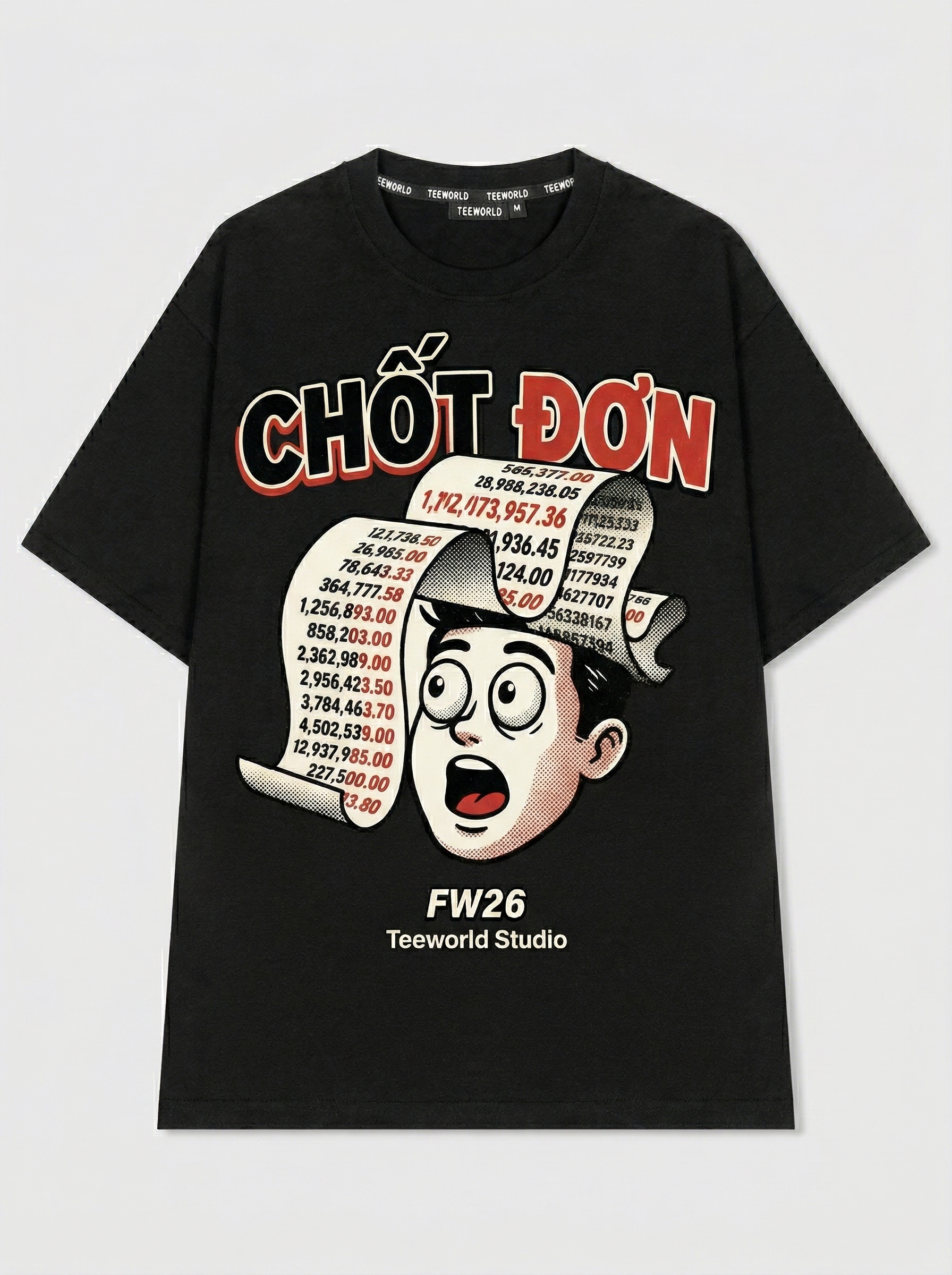 Receipt Horror - Thiết kế độc quyền từ Teeworld. Chất liệu: Cotton Premium 250gsm, form oversize thoải mái. In ấn: Công nghệ in sắc nét, bền màu sau nhiều lần giặt. Phong cách: Streetwear hiện đại, dễ phối đồ.