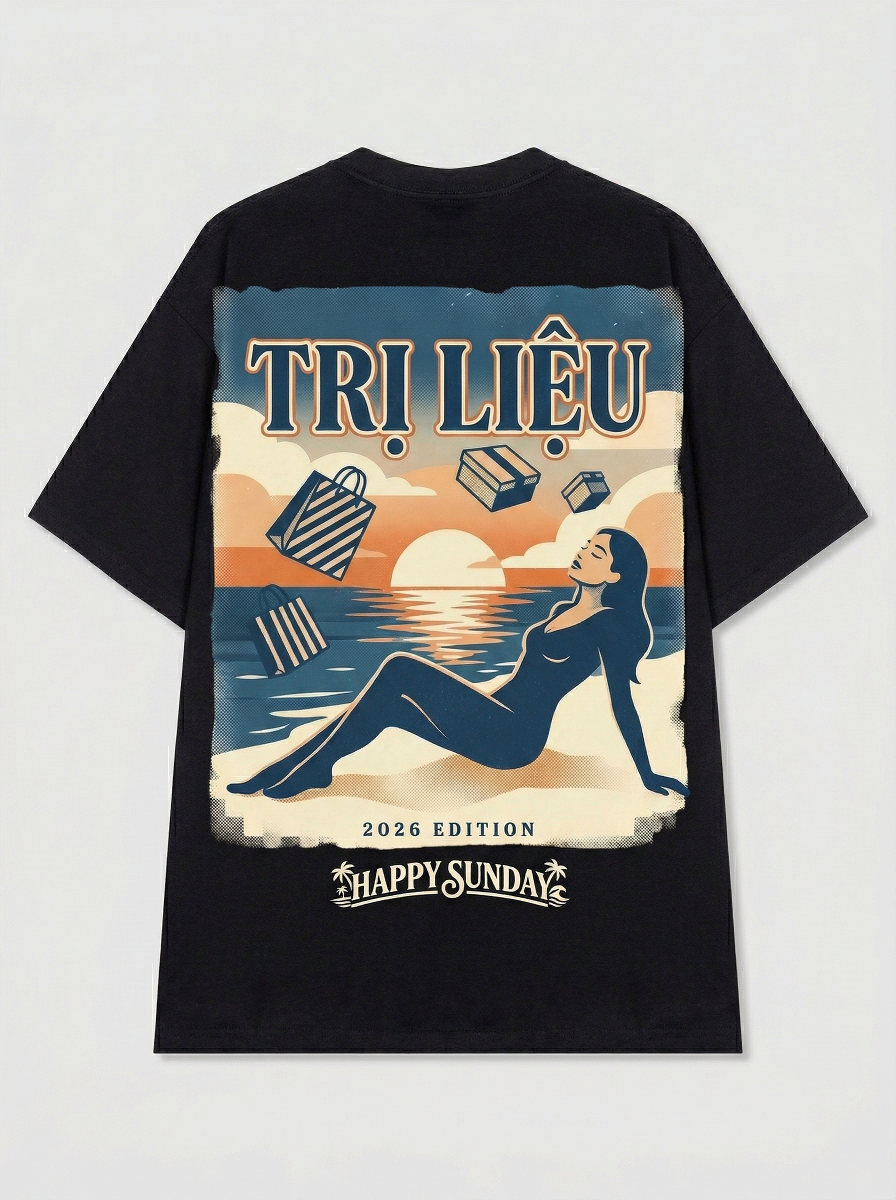 Retail Therapy - Thiết kế độc quyền từ Happy Sunday. Chất liệu: Cotton Premium 250gsm, form oversize thoải mái. In ấn: Công nghệ in sắc nét, bền màu sau nhiều lần giặt. Phong cách: Streetwear hiện đại, dễ phối đồ.