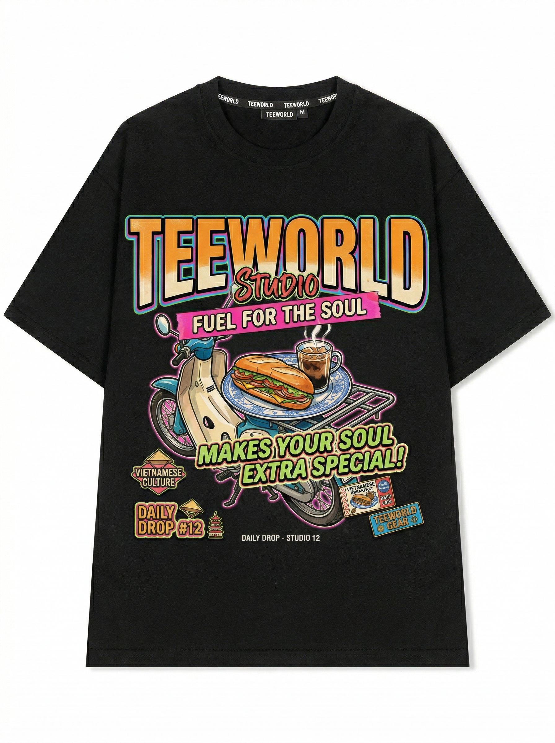 Thiết kế độc quyền từ Teeworld. Chất liệu: Cotton Premium 250gsm, form oversize thoải mái. In ấn: Công nghệ in sắc nét, bền màu sau nhiều lần giặt. Phong cách: Streetwear hiện đại, dễ phối đồ.