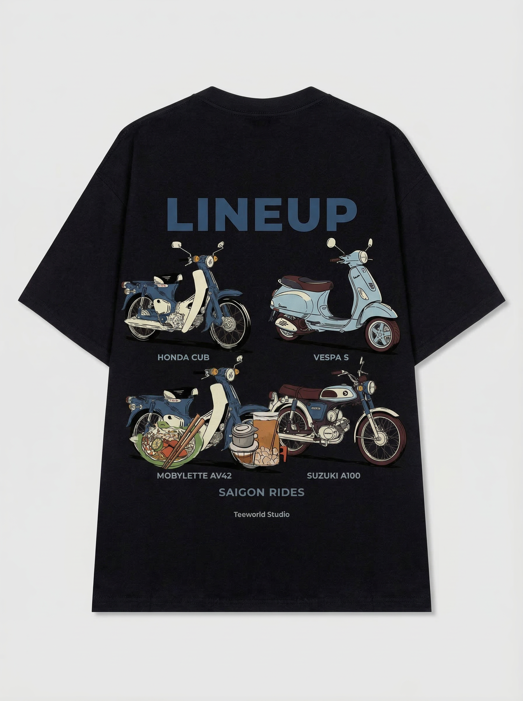Retro Motors - Thiết kế độc quyền từ Teeworld. Chất liệu: Cotton Premium 250gsm, form oversize thoải mái. In ấn: Công nghệ in sắc nét, bền màu sau nhiều lần giặt. Phong cách: Streetwear hiện đại, dễ phối đồ.