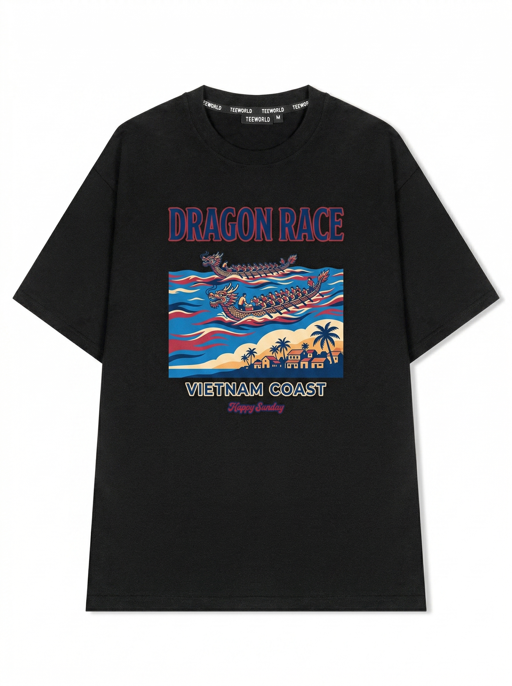 River Dragon - Thiết kế độc quyền từ Happy Sunday. Chất liệu: Cotton Premium 250gsm, form oversize thoải mái. In ấn: Công nghệ in sắc nét, bền màu sau nhiều lần giặt. Phong cách: Đồ họa nghệ thuật, nổi bật.