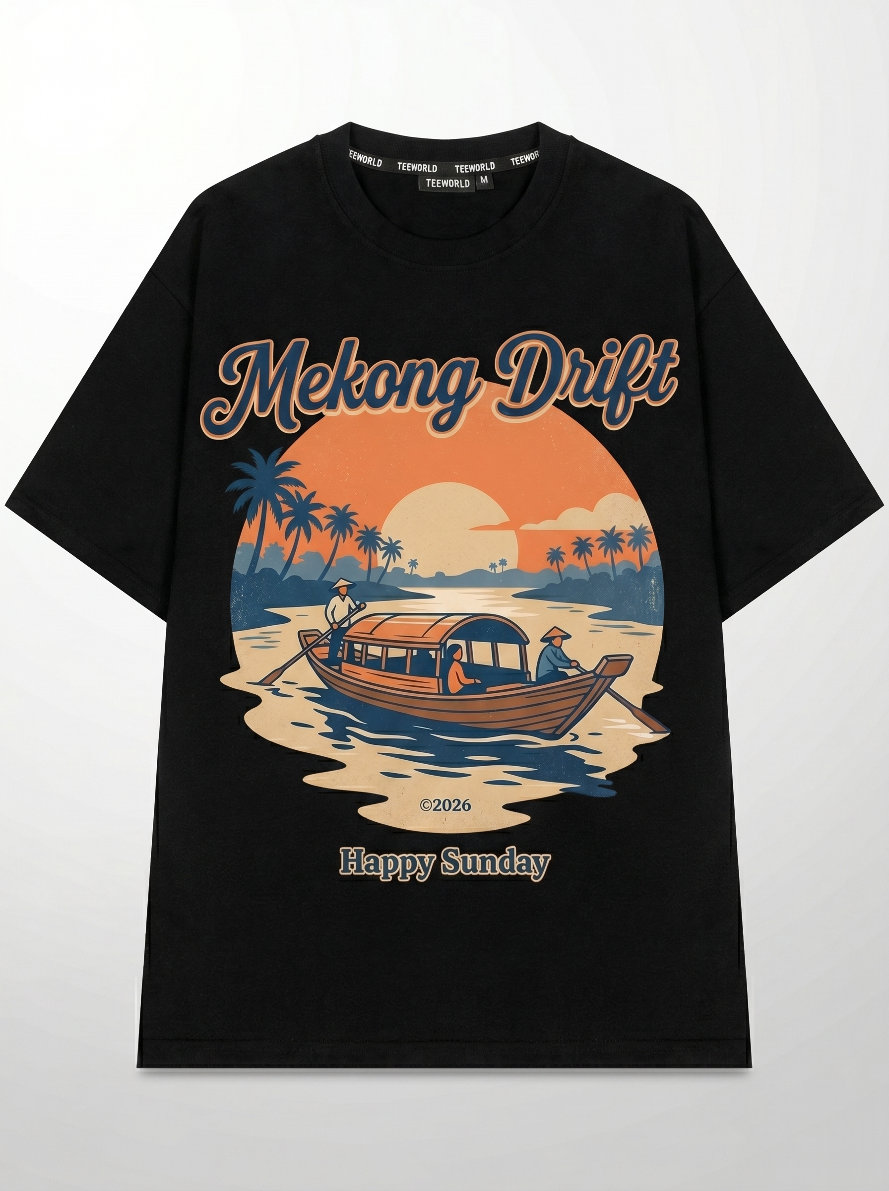 Riverboat Sunset - Thiết kế độc quyền từ Happy Sunday. Chất liệu: Cotton Premium 250gsm, form oversize thoải mái. In ấn: Công nghệ in sắc nét, bền màu sau nhiều lần giặt. Phong cách: Đồ họa nghệ thuật, nổi bật.