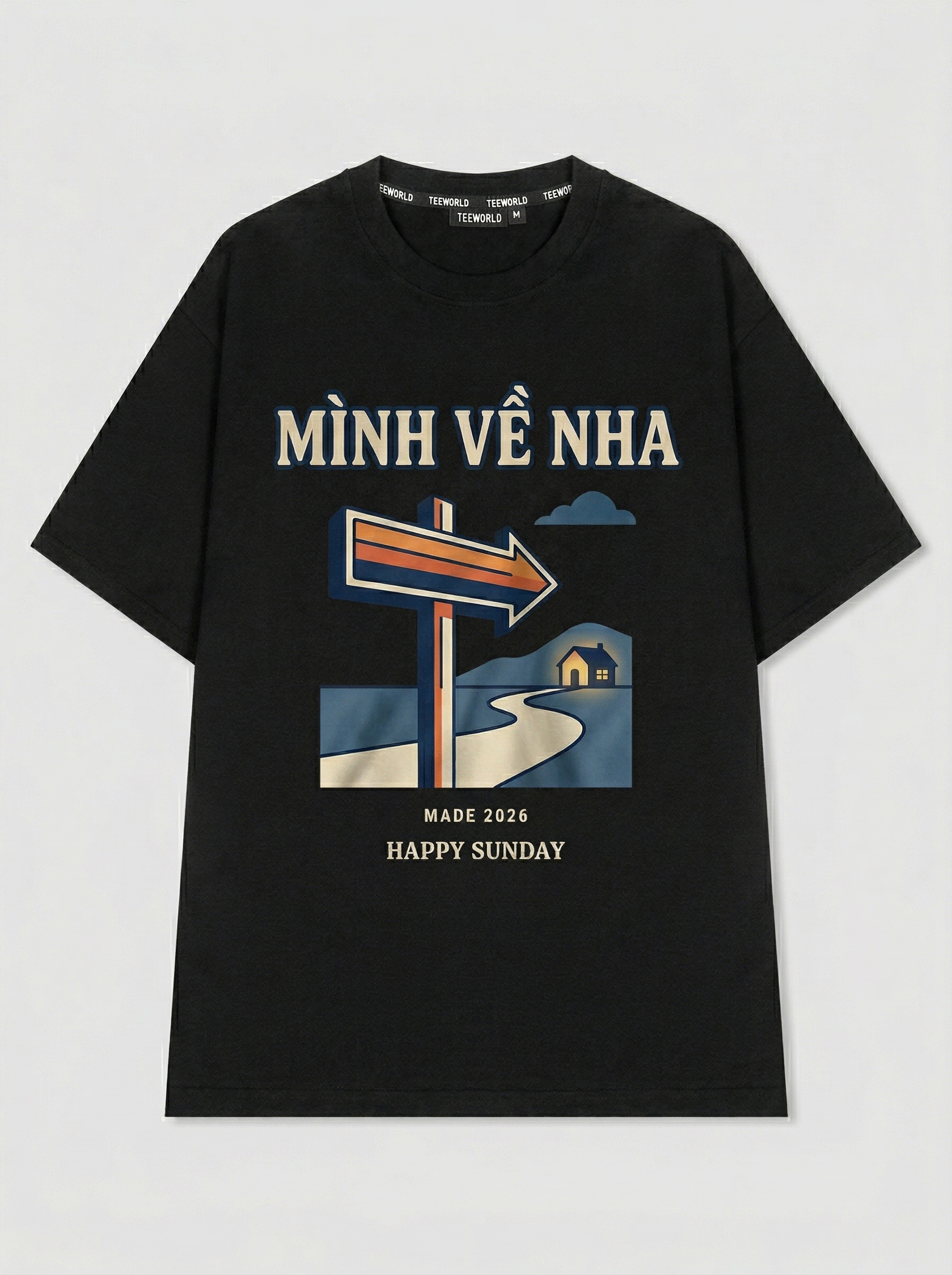 Road Home - Thiết kế độc quyền từ Happy Sunday. Chất liệu: Cotton Premium 250gsm, form oversize thoải mái. In ấn: Công nghệ in sắc nét, bền màu sau nhiều lần giặt. Phong cách: Streetwear hiện đại, dễ phối đồ.