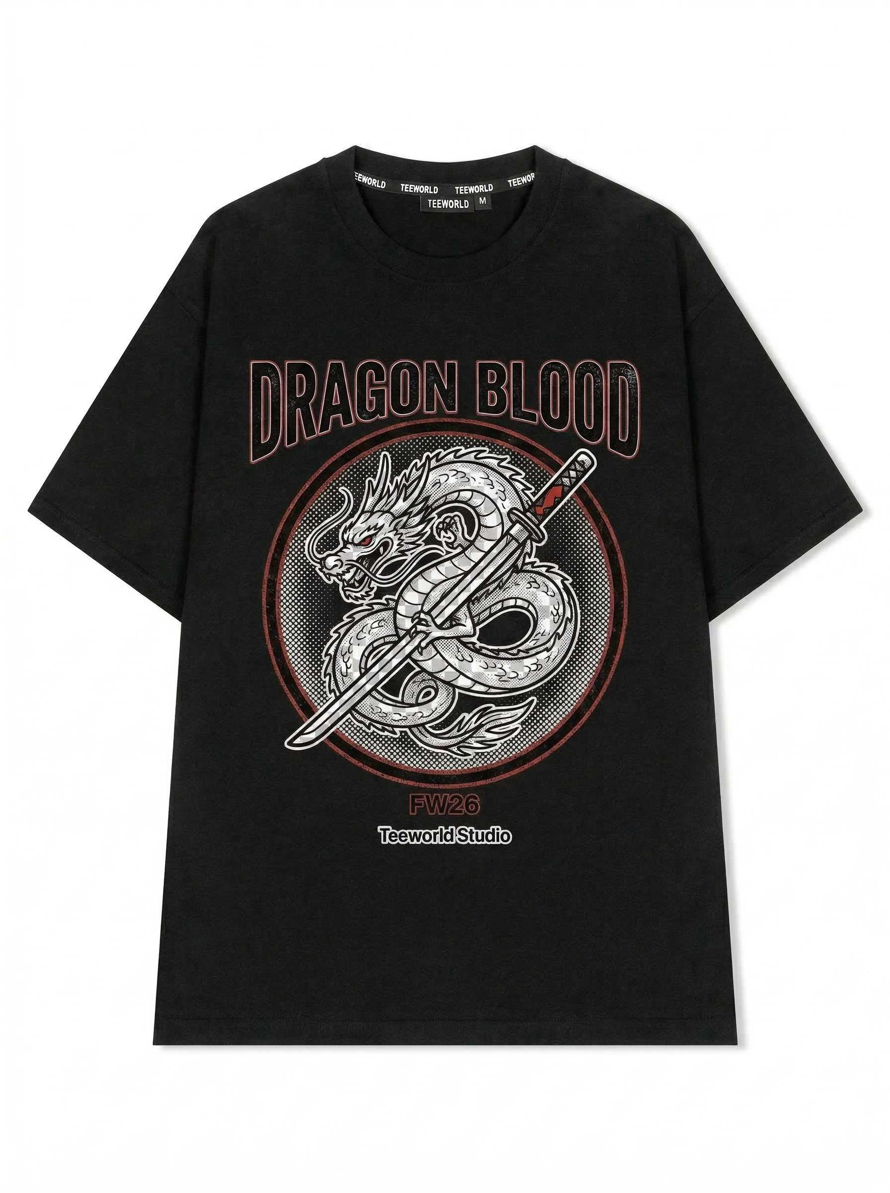 Rồng Kiếm - Thiết kế độc quyền từ Teeworld. Chất liệu: Cotton Premium 250gsm, form oversize thoải mái. In ấn: Công nghệ in sắc nét, bền màu sau nhiều lần giặt. Phong cách: Streetwear hiện đại, dễ phối đồ.