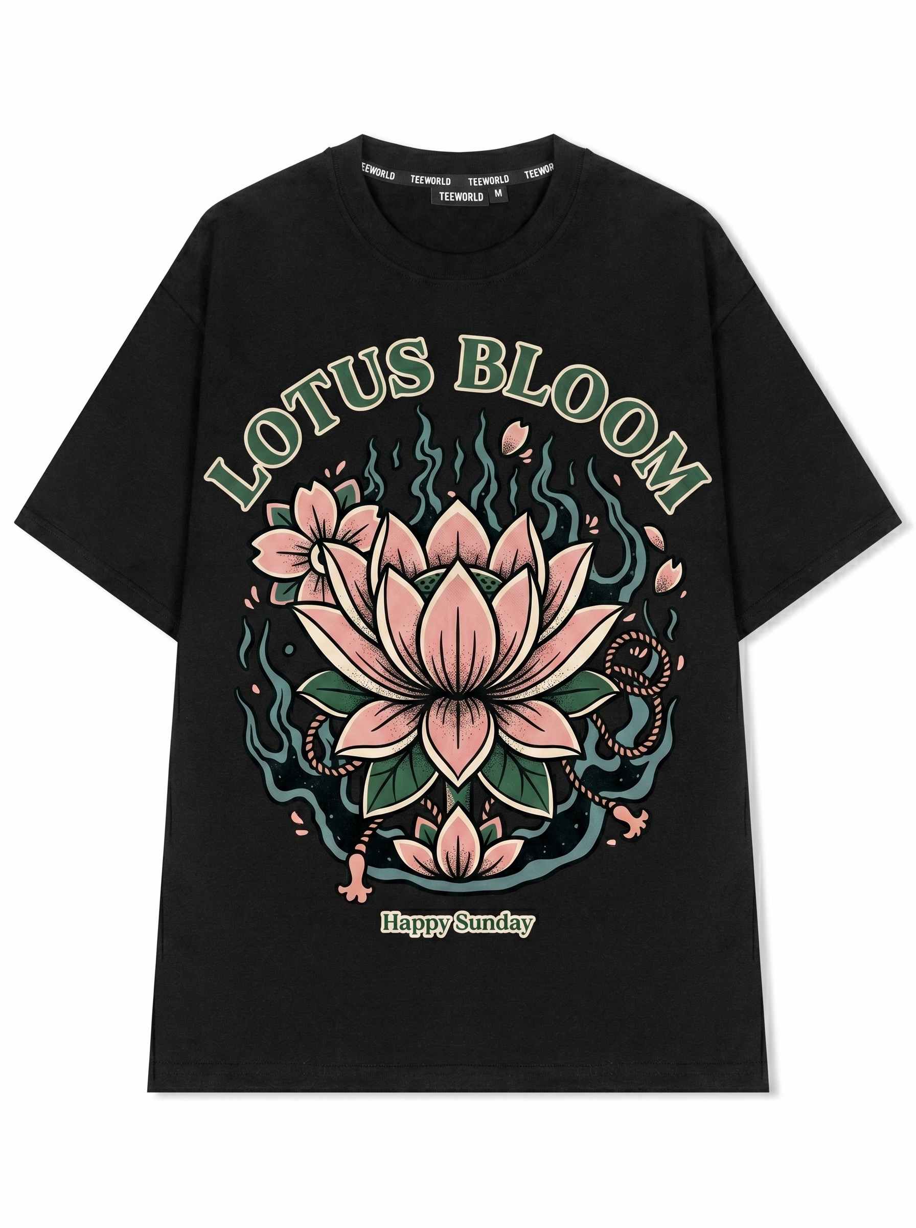 Sacred Bloom - Thiết kế độc quyền từ Happy Sunday. Chất liệu: Cotton Premium 250gsm, form oversize thoải mái. In ấn: Công nghệ in sắc nét, bền màu sau nhiều lần giặt. Phong cách: Đồ họa nghệ thuật, nổi bật.