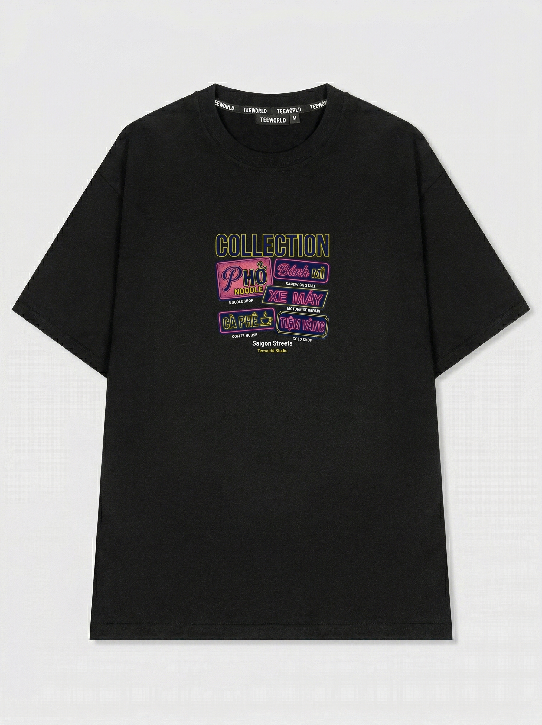 Saigon Neon Art - Thiết kế độc quyền từ Teeworld. Chất liệu: Cotton Premium 250gsm, form oversize thoải mái. In ấn: Công nghệ in sắc nét, bền màu sau nhiều lần giặt. Phong cách: Streetwear hiện đại, dễ phối đồ.